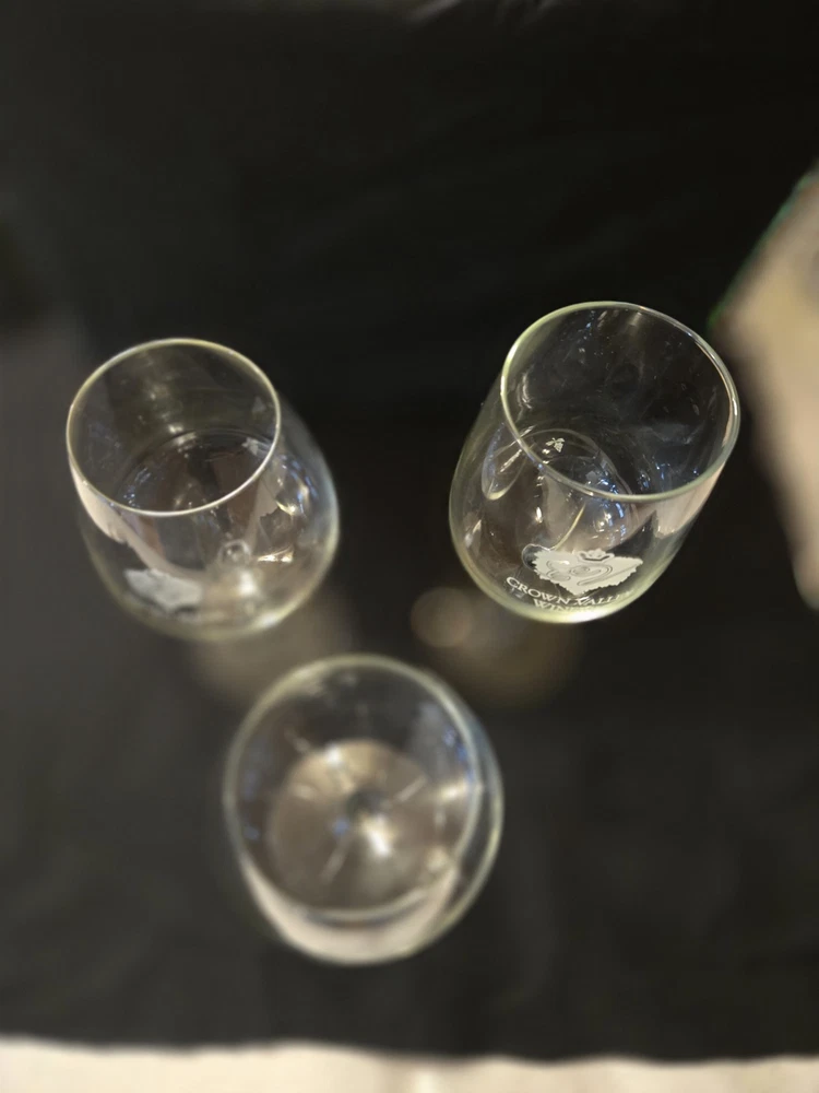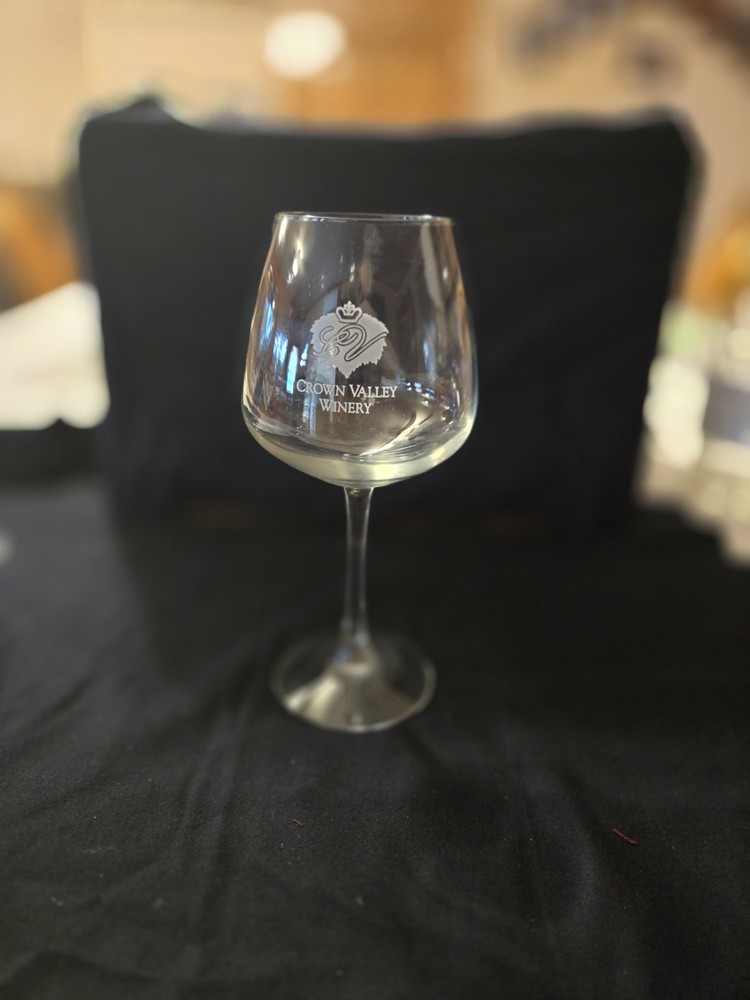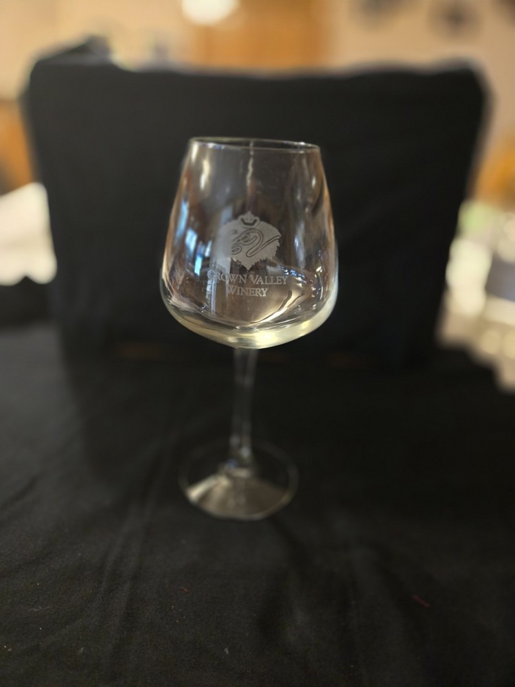 The product is a set of three large Crown Valley stemmed wine glasses, featuring a nature print pattern engraved on the glasses. Made of glass with a clear color, these round wine glasses are perfect for all occasions and are designed for adults. The wine glasses are from Crown Valley Winery, a reputable brand known for producing high-quality glassware. Made in the United States, these wine glasses are a stylish and practical addition to any home bar or dining collection.