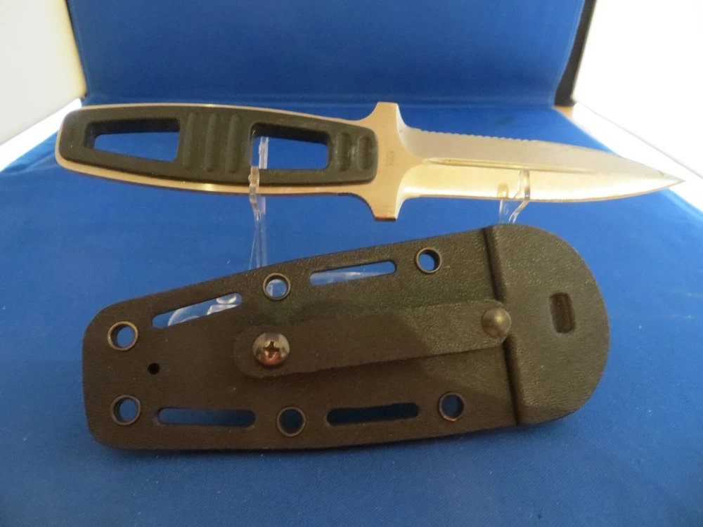 For your consideration is a vintage Kershaw Amphibian model 1006 boot/dagger. It measures 7 7/8 inches overall with a 3 1/2 inch partially serrated blade. Comes with a sheath as shown. Overall condition is very good to excellent. What you see is what you get. I SHIP VIA UNITED STATES POST OFFICE AND PROVIDE DELIVERY CONFIRMATION NUMBER UPON SHIPPING, IF THIS IS A PROBLEM PLEASE ADVISE. I'm all about customer satisfaction so if there is a problem please contact me first. Insurance is not provided, so If you want your item insured please advise and I'll add it to your invoice. I leave feedback after feedback has been received. Purchases are to be paid for within seven (7) days. Thank you for looking and good luck.