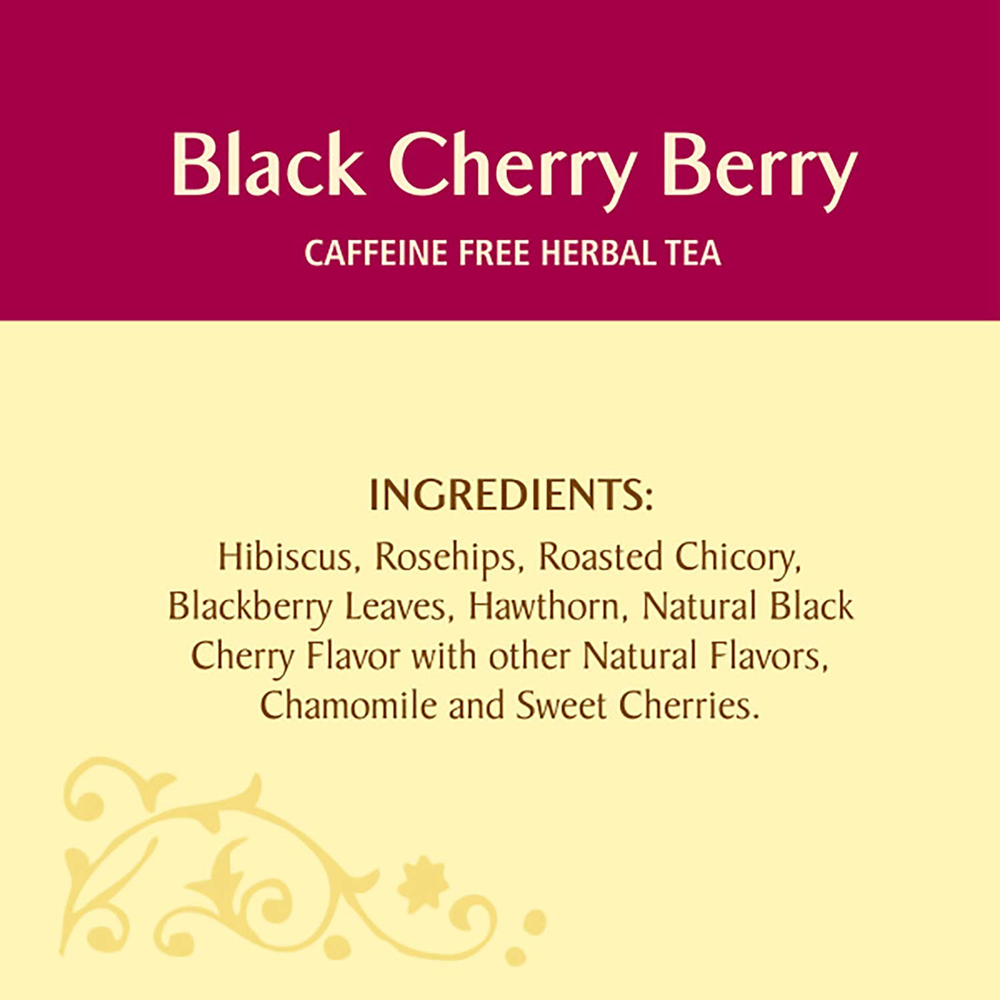 Six 20 count boxes of Black Cherry Berry Herbal tea bags Infused with hibiscus, rosehips and natural berry flavors Caffeine and gluten free No artificial flavors, colors or artificial preservatives Steep in hot water for 4-6 minutes for the perfect cup Celestial Seasonings Black Cherry Berry Herbal Tea is the perfect way to unwind and relax after a long day. Our caffeine and gluten-free tea blend is infused with hibiscus, rosehips and berries. We achieve this sweet and tart flavor profile without the use of any artificial flavors, colors or artificial preservatives. To reduce excess waste, our tea bags are stringless and come packaged in recycled boxes. Simply steep a tea bag in hot water for 4-6 minutes for the perfect cup. Includes six 20-count boxes of Celestial Seasonings Black Cherry Berry Herbal Tea. Celestial Seasonings teas are an invitation to bring the perfect balance to your day. From herbal teas to chai and matcha lattes and everything in between, there’s a Celestial blend that’s just right for any occasion. We blend our teas using the finest herbs, teas, spices and botanicals available, and we lovingly package them in engaging, thoughtful boxes that truly represent the goodness found inside.