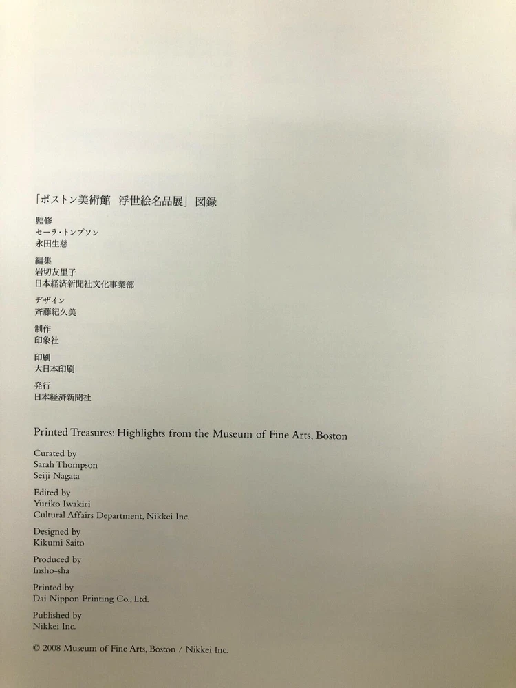 Topic: Abstract Art, Art Criticism, Art History, Artists, Buddhism, Calligraphy, Classic Modern Art, Contemporary Art, Cultural History, Culture, Exhibitions, Fine Arts, Modern Art, Museums, Paintings, Popular Culture, Print Art, Japan, Japanese, Shunga Language: Japanese Original Language: Japanese Seller Notes: “slight feeling of age / light scratches or other, but overall good” Type: Picture Book Publication Year: 2008 Genre: Art & Culture Author: N/A Country/Region of Manufacture: Japan Book Title: Printed Treasures Highlights from the Museum of Fine Arts BOSTON