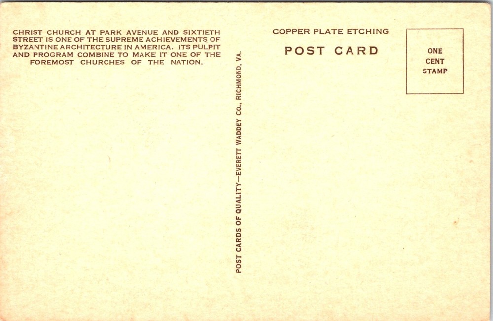 Discover NYC’s Christ Church Byzantine Architecture Vintage Postcard 14473