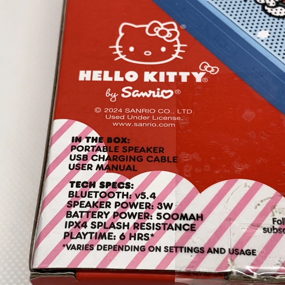 Hello Kitty by Sanrio Bluetooth Portable Speaker Volume Pricing New in box. 3 Available at time of listing. We are passing our shipping discount on to you. Thank you for Looking! We hope you will check out our other items as you never know what we may find. Our shipping might be a little more than others at times but that is because we pack things to withstand the worst that can happen to them. When you get your order in one piece and see the way it is packaged, we hope you will see why our cost to ship is higher at times than others. Materials to protect your order add weight and size to the package. We are continually looking for ways to reduce costs for you, but we will not reduce what we feel is the appropriate protection for your order. You will never get an order from us that is just tossed in a box free to move inside the box. Every order is packaged with its probably getting thrown or dropped at some point on its way to you in mind. All Clothing Items are cleaned before listing. Always open to reasonable offers.