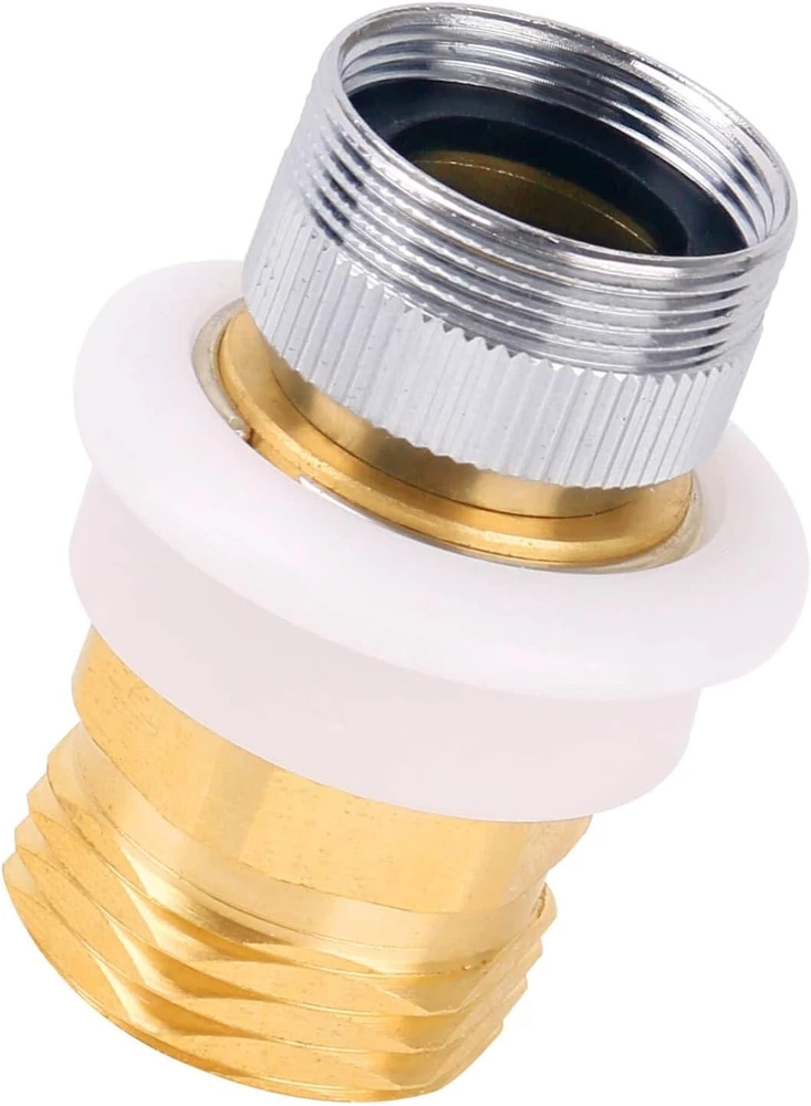 Dishwasher Snap Adapter fits Male 15/16-27 or Female 55/64-27 x Male 3/4.Garden Hose Fitting Fits standard kitchen sink, bathroom and laundry faucets. Solid Brass Quick Connector Compatible with DANCO washers, portable dishwashers, and humidifiers. Dishwasher Snap Coupling adapter Made of solid brass with chrome-plated construction for durability and protection from rust and corrosion, superior to plastic hose quick couplings. Dishwasher Quick Coupling Adapter fits garden hoses with 15/16-27 male threads or 55/64-27 female threads x 3/4 male threads. Dishwasher Adapter with snap-on connection can be quickly installed in minutes without any tools,Also used for garden hose quick couplings. Product Description Dishwasher Snap Coupling Adapter fits Male 15/16-27 or Female 55/64-27 x Male 3/4 garden hose. Dishwasher Faucet Adapter compatible with DANCO Dishwashers, Portable Dishwashers and Humidifiers. Easy connection to indoor and outdoor taps Dual Thread Dishwasher Snap Coupling Adapter for DANCO Portable Washing Machines Dishwasher Made from solid brass with chrome plated construction for durability and protection against rust and corrosion, superior to plastic quick connect hose couplings. Dishwasher Snap Coupling Adapter Also used for garden hose quick couplings Portable dishwasher sink connector Easy and quick connection without tools Chrome plating process can prevent rust and corrosion Addition of rubber seals can prevent splashing water Dishwasher Snap Adapter fits Male 15/16-27 or Female 55/64-27 x Male 3/4.Garden Hose Fitting Fits standard kitchen sink, bathroom and laundry faucets. Solid Brass Quick Connector Compatible with DANCO washers, portable dishwashers, and humidifiers. Dishwasher Snap Coupling adapter Made of solid brass with chrome-plated construction for durability and protection from rust and corrosion, superior to plastic hose quick couplings. Dishwasher Quick Coupling Adapter fits garden hoses with 15/16-27 male threads or 55/64-27 female threads x 3/4 male threads. Dishwasher Adapter with snap-on connection can be quickly installed in minutes without any tools,Also used for garden hose quick couplings Faucet Adapter Dishwasher Faucet Adapter Plug