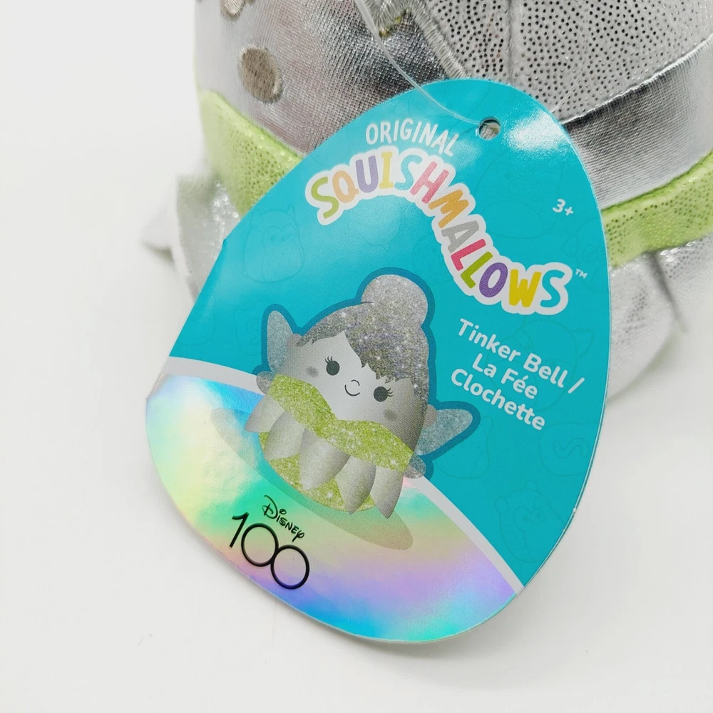 Disney 100th Anniversary Special Edition Sparkle Squishmallows Tinker Bell silver green