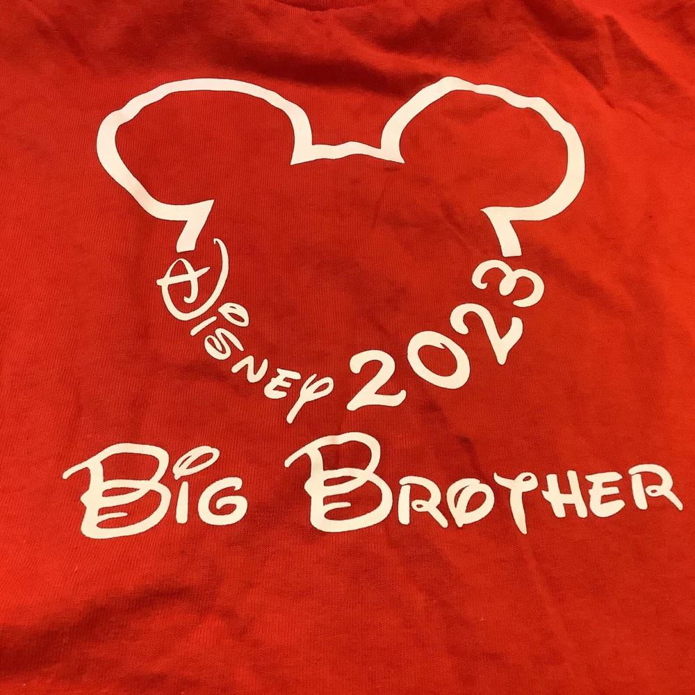 Disney 2023~”Big Brother” Red T-Shirt~Short Sleeves~Gildan Brand/Size 5T~NICE~