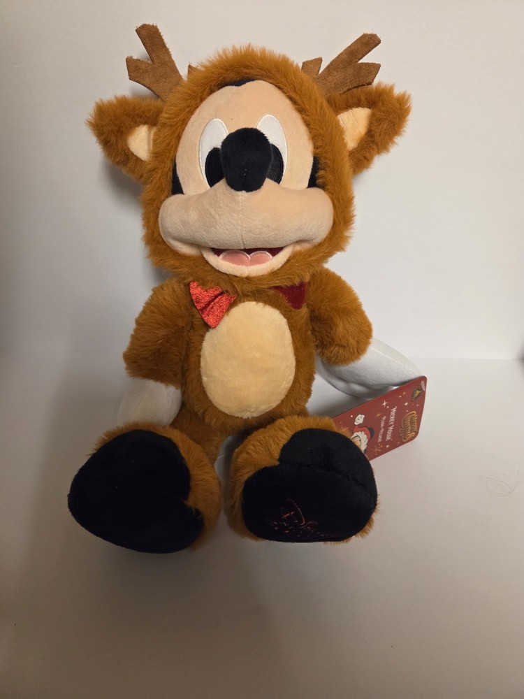 The product is a 15-inch plush toy featuring Mickey Mouse and Minnie Mouse dressed as reindeer, released by Disney for the 2025 Christmas season. This collectible item captures the beloved characters in a festive and playful design, perfect for Disney fans and collectors alike. The high-quality plush material makes it a soft and huggable addition to any holiday decor or display.