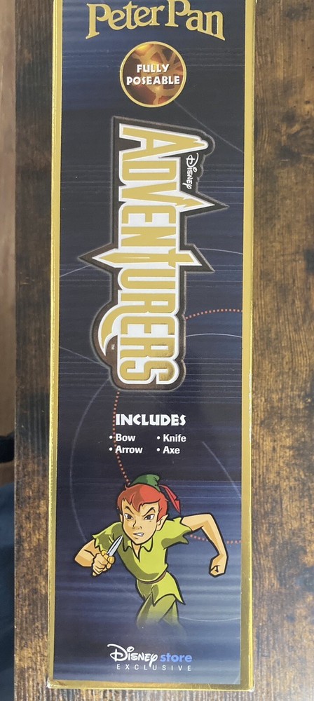 The Disney Store Disney Adventures Peter Pan 11.5" Poseable toy features the beloved character from the Disney franchise, Peter Pan. This poseable articulated toy is designed with attention to detail and includes accessories to enhance playtime. Box includes a bow, arrow, knife and axe.