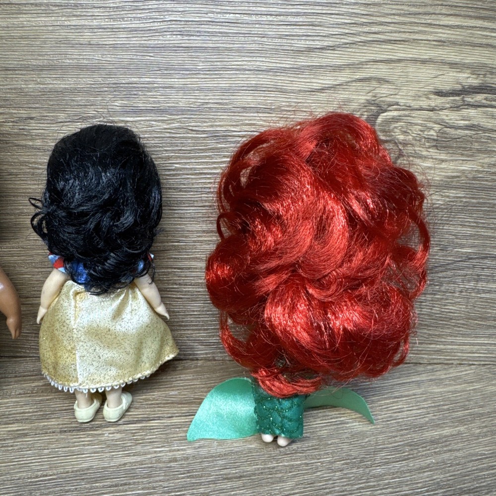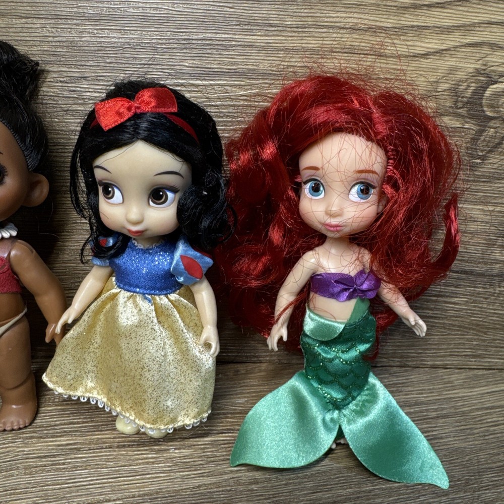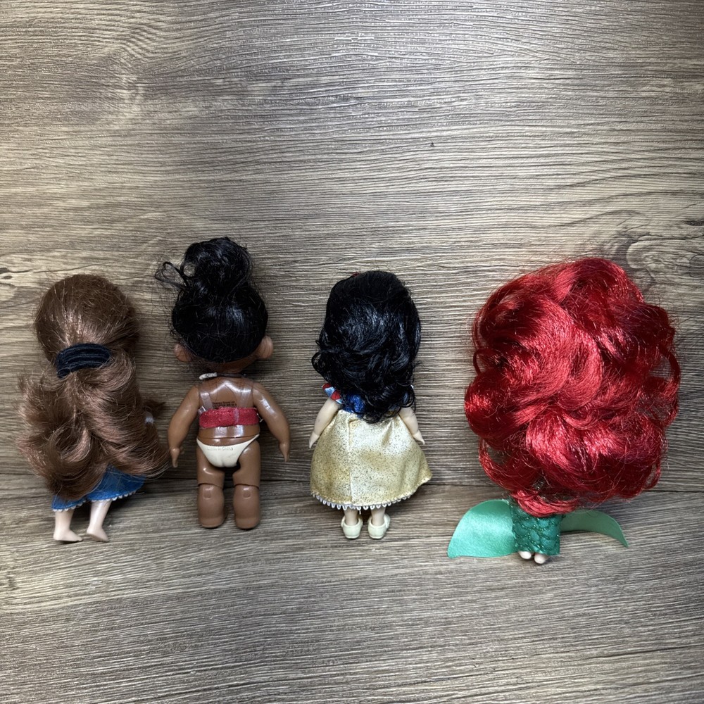 This Disney Store Animators Collection Mini Dolls Play Set Figure Princess Lot 4 is a must-have for any Disney fan. The set includes four figures of popular Disney princesses - Belle, Snow White, Moana, and another character - with varying hair colors and eye colors. The dolls are 5 inches tall and made of plastic, and the set comes with a custom bundle of four pieces. The set is an original and licensed reproduction by Disney, with characters from the Disney Princesses franchise. It is recommended for ages 5 and up, and is perfect for imaginative play and collection. The packaging is not included, but the set is a great addition to any Disney collection.