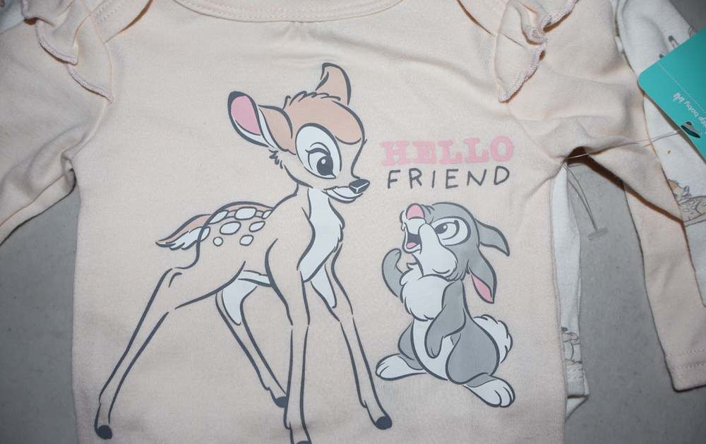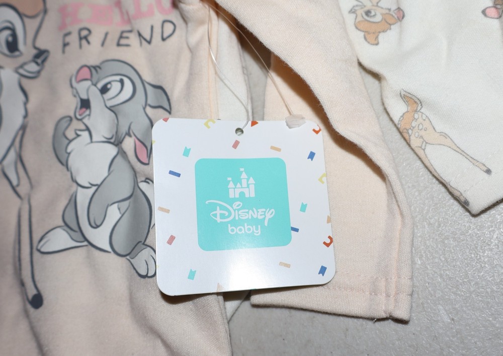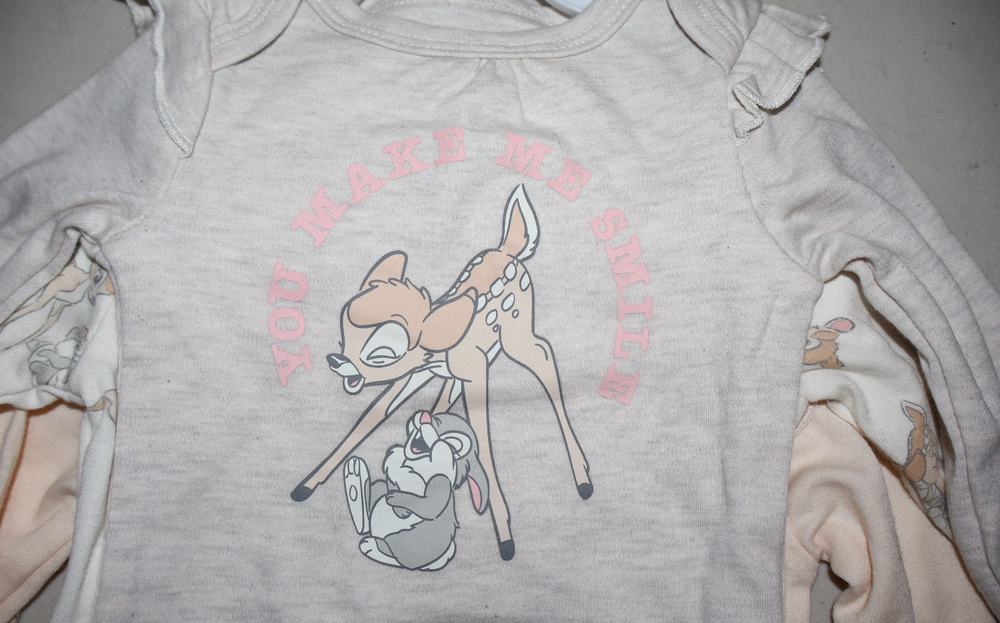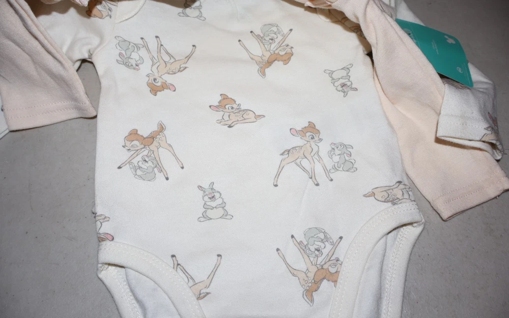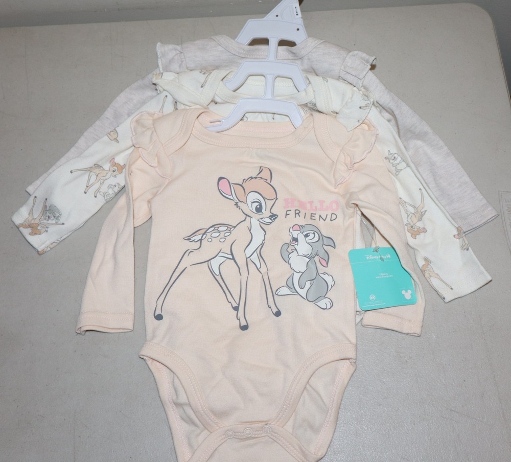 The Disney Baby Bambi 3 One Piece "You Make Me Smile" in Girl Size 6-9 Mo is a charming bodysuit featuring the beloved character Bambi from Disney's Bambi. This 3-piece set includes a snap closure for easy dressing and is machine washable for convenience. Perfect for casual occasions in the spring and summer seasons, this multicolored onesie is a delightful addition to any little girl's wardrobe, especially for those who love cartoon and TV movie characters. The Disney Baby brand ensures high-quality and adorable designs that will make any baby smile.