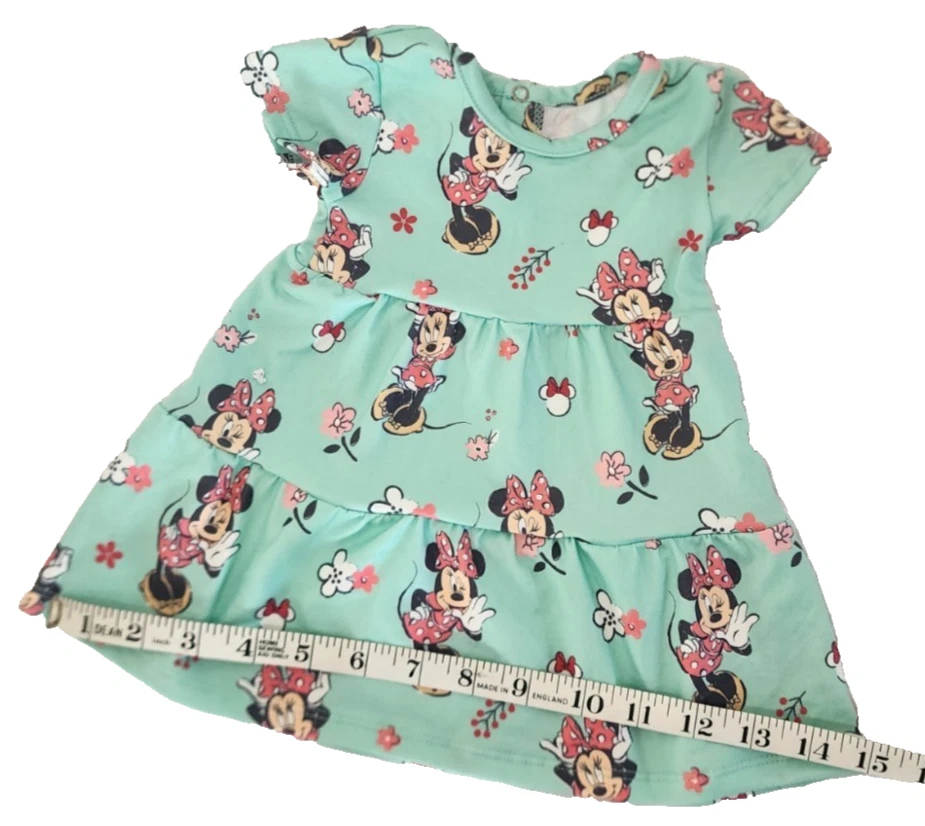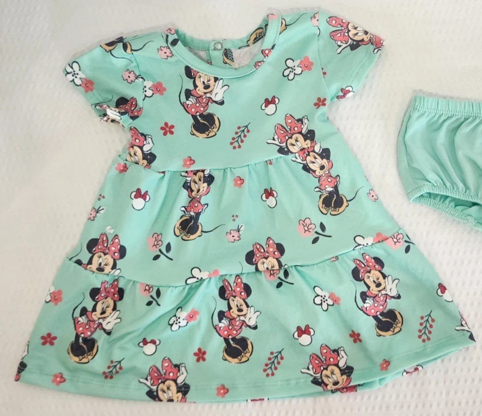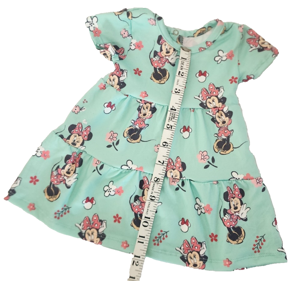 Detailed Description: This adorable 2-piece Minnie Mouse outfit from Disney Baby is perfect for your little sweetheart! π Designed in a vibrant aqua green , this matching set includes: π A short-sleeve dress featuring a playful all-over print of Minnie Mouse with red bows, flowers, and cheerful poses. π©² A coordinating diaper cover (bloomers) in solid aqua green with comfy elastic around the waist and legs. Made with soft, breathable cotton blend fabric, this outfit is ideal for everyday play or picture-perfect outings. Whether you're heading to a birthday party, Disney-themed event, or just want to add some magic to the day, this charming set is a must-have. π« β¨ Size: 3 Months β¨ Official Disney Baby Apparel β¨ Perfect for gifting, photo shoots, or warm weather fun! Make your babyβs outfit Minnie-approved with this delightful and comfy Disney classic! ππΈ