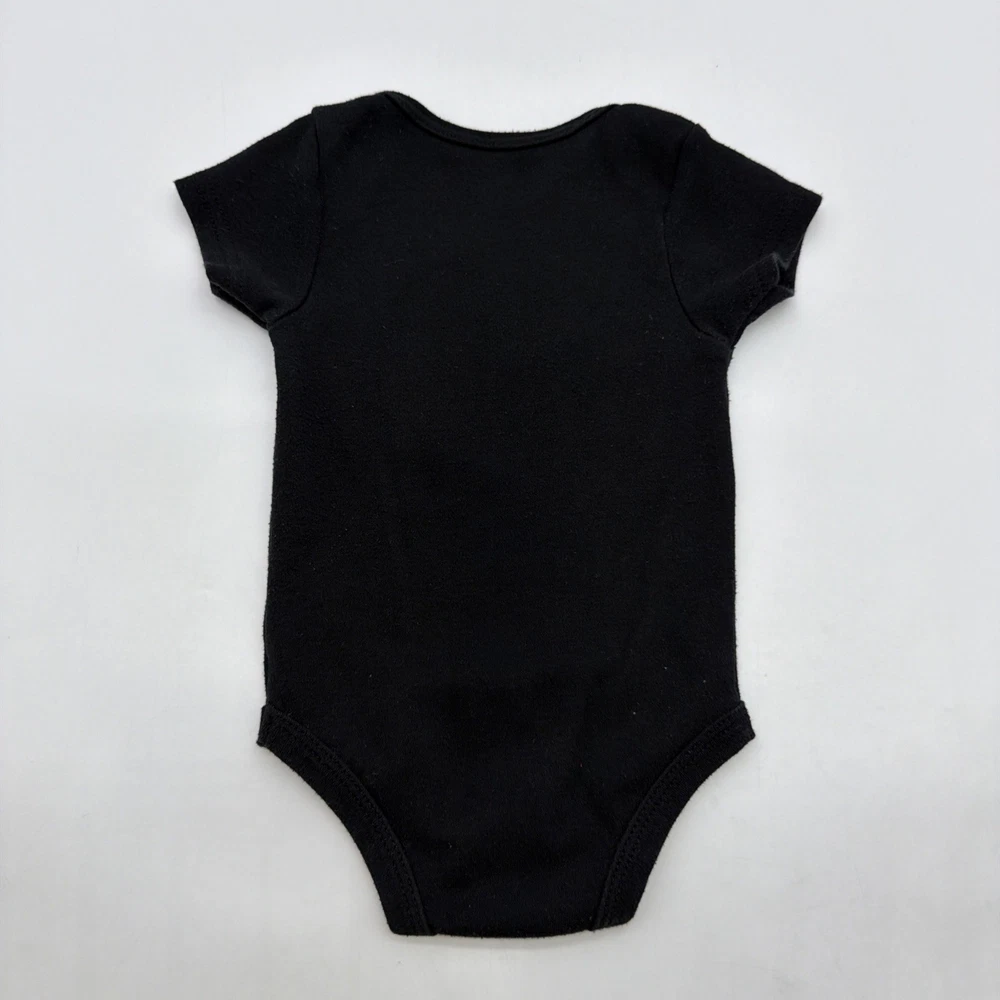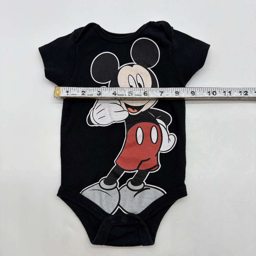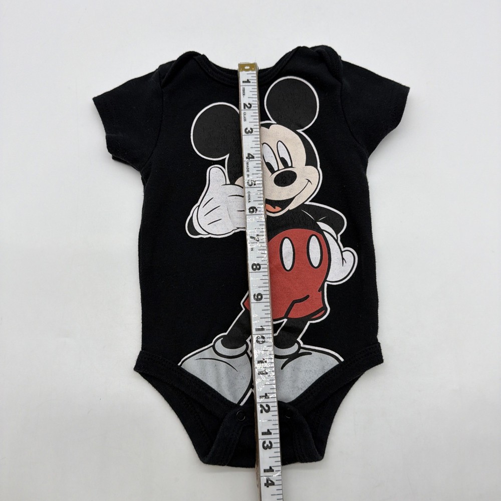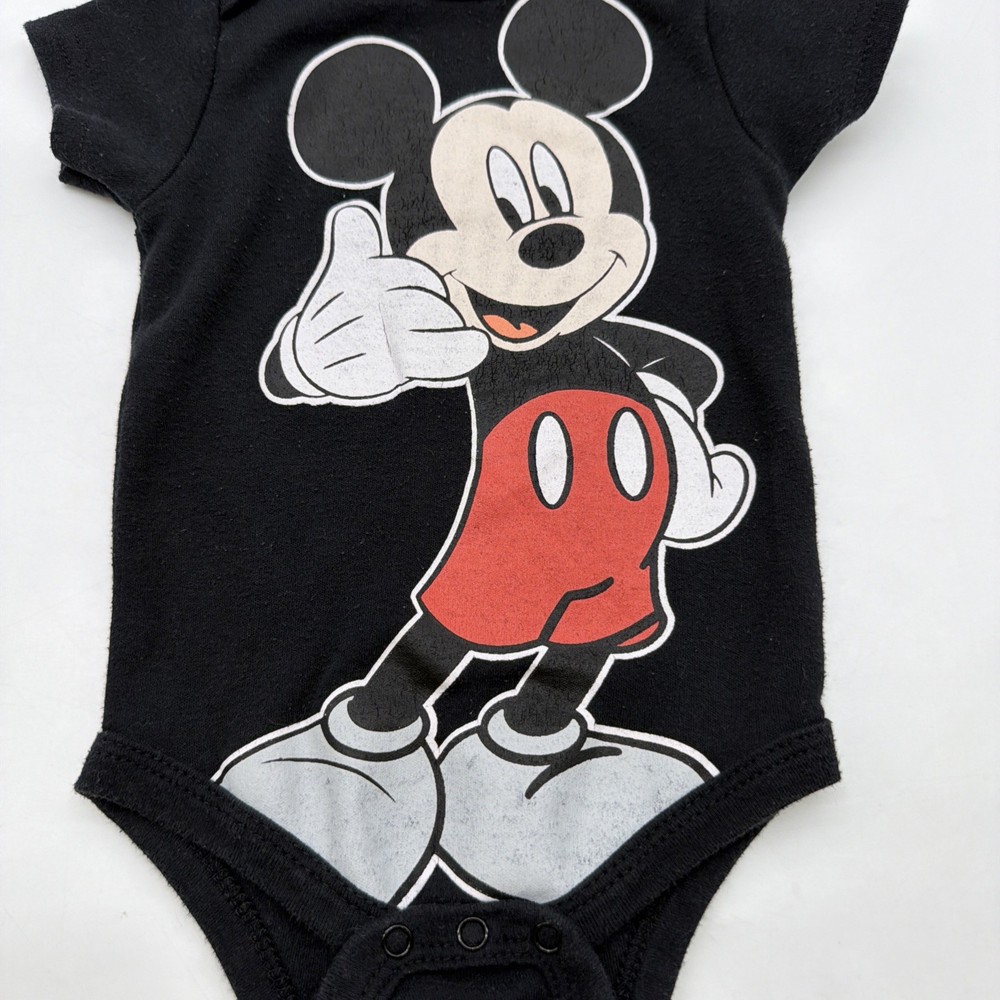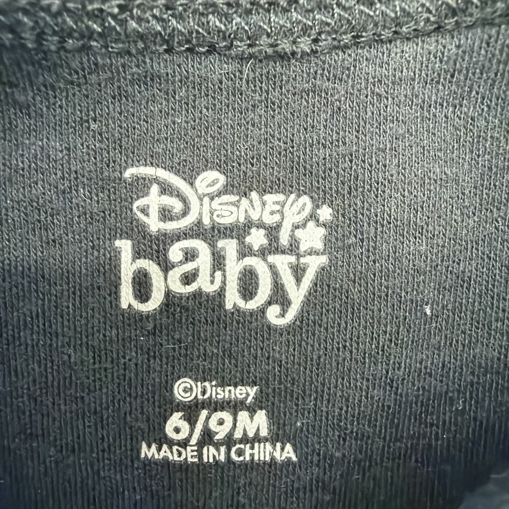 The Disney Baby One Piece Toddler Boys in size 6/9M is a black bodysuit with a classic cartoon character design. Made of a comfortable blend of polyester and cotton, this one-piece outfit features a crew neck and short sleeves with a snap closure for easy dressing. Ideal for travel, parties, or casual wear, this versatile bodysuit is perfect for all seasons and includes fun accents like a logo print and playful snaps. Perfect for active toddlers who love walking, running, and playing at the beach, this Disney Baby outfit is sure to be a hit with any little boy who loves the character. Check pictures for flaws and measurements