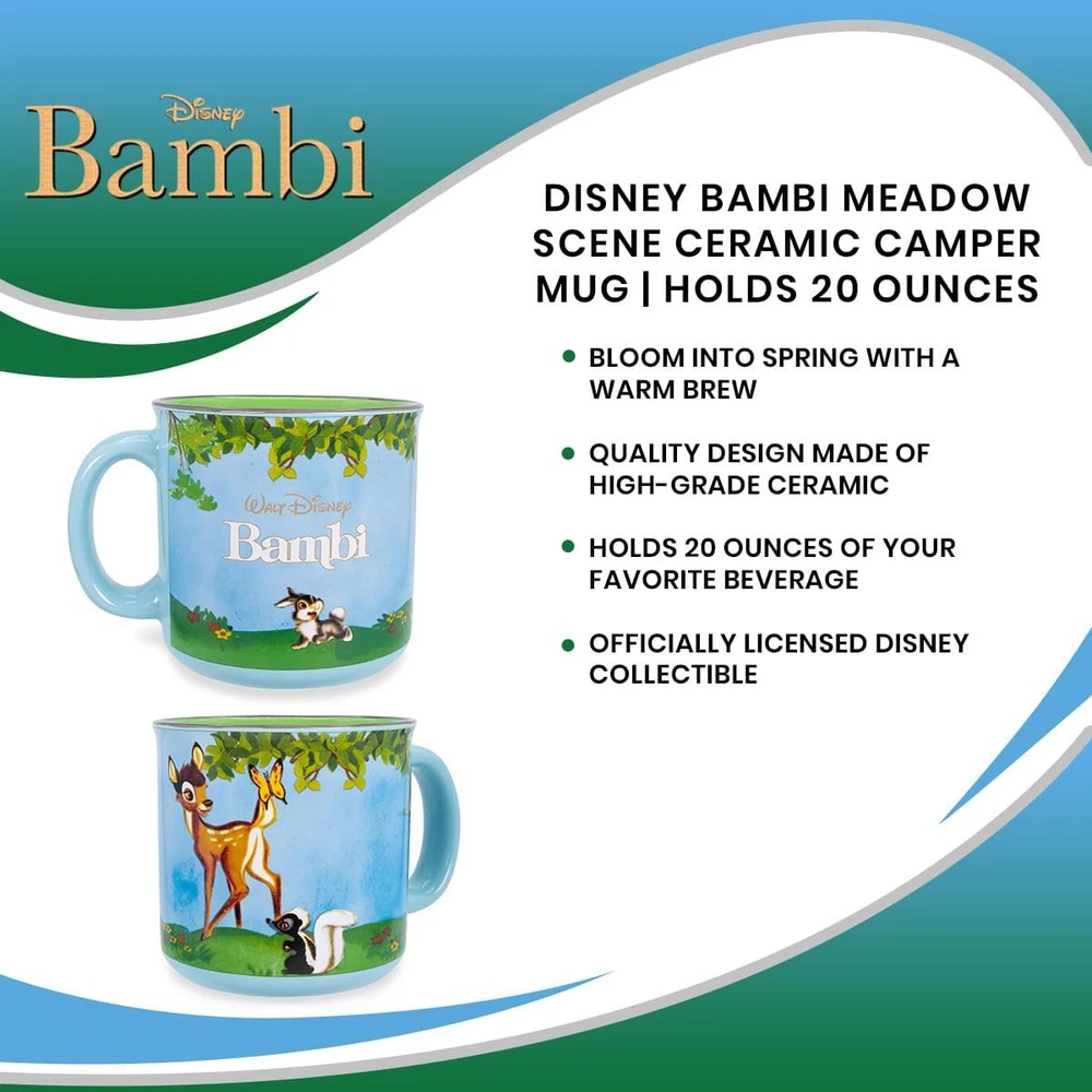 About Us Payment Shipping Returns Contact Us MENU Store Pages About Us Payment Shipping Returns Contact Us Store Categories Costumes & Accessories Apparel Figures & Collectibles Games & Toys Home & Office Party Supplies & Decoration Other Shop by Category Costumes & Accessories Apparel Figures & Collectibles Games & Toys Home & Office Party Supplies & Decoration Other Store Newsletter Sign up to receive special insider notifications of deals, promotions, and new items! SIGN UP Satisfaction Guaranteed Combined Shipping Worldwide Delivery Disney Bambi Meadow Scene Ceramic Camper Mug | Holds 20 Ounces Click Thumbnails to Enlarge Item Sku: SVB-DIS633E1-C Manufacturer: Silver Buffalo Item UPC: 810089632463 Manufacturer ID: DIS633E1 Product Description THE GREAT PRINCE OF THE FOREST Your next adventure awaits with this exclusive camper mug from Disney's Bambi . Get into all sorts of foresting fun with Bambi, Flower, and Thumper as they play around in the grassy meadows. Decorated with a charming scene of the woodland friends among a foliage of flowers, complete with a contrasting grassy-green interior. Takes inspiration from the original vintage artwork that defined Walt Disney Animation's classic Golden Era. BRING ENCHANTMENT TO YOUR HOME When you want a taste of springtime, get a little fresh air with the adorable fawn and his fellow forest critters. Your morning coffee routine will be truly enchanting with this sturdy ceramic mug to make every warm brew a delight. Spring into good times with this officially licensed Disney collectible. CARE INSTRUCTIONS Easy care Top-rack dishwasher safe Microwave safe Enjoy your favorite beverage in style with this fun Disney Bambi camper style mug! Fun and functional, this mug is great for using around the house, at the office, parties, and more! Officially licensed. Produced by Silver Buffalo, a trendsetting housewares and home decor company based in the heart of New York City. A Toynk exclusive! BLOOM INTO SPRING: Start your day off with a smile drinking from this charming camper mug inspired by Disney's Bambi. The springtime style pays homage to the Walt Disney animated classic featuring the prince of the forest. TRENDY DRINKWARE: Start your day off with a smile drinking from this fun Disney mug featuring the meadow scene from Bambi! BRINGS OUT YOUR CHARACTER: You'll be charmed by this endearing coffee mug. Features the meadow scene from Bambi as he frolics around with his woodland friends. Complete with the movie title's classic logo printed on the side. SPACIOUS DESIGN: Oversized mug holds up to 20 ounces of your favorite hot or cold beverage. IMPRESSIVE, LONG-LASTING QUALITY: This BPA-free ceramic mug is made for everyday use to accompany all your woodland adventures. Easy to clean and maintain, it's suitable for both microwave and top-rack dishwasher. SAFETY AND CARE: Ceramic mug is BPA-free and toxin-free. Suitable for dishwasher or microwave. A WARM BREW FOR YOUR NEXT ADVENTURE: On a beautiful spring day when the flowers are blossoming, enjoy a refreshment with this coffee mug. Generously holds up to 20 ounces of your preferred hot or cold beverage. OFFICIALLY LICENSED: Have confidence knowing you are purchasing an officially licensed Disney product from Silver Buffalo. OFFICIAL DISNEY COLLECTIBLE: You'll simply fawn over this officially licensed camper mug from Disney's Bambi. Set out on a life-changing adventure with the Great Prince of the Forest and his friends to keep you company. GREAT GIFT IDEA: Purchase this mug for yourself or gift it to the Disney fan in your life! > Payment Terms TO CHECK OUT Please use the Ebay checkout system to complete the purchase of your item(s). Orders that are not checked out via the Ebay checkout system may be significantly delayed. DON'T LET YOUR EXCITEMENT OF ORDERING GET THE BETTER OF YOU. Please take a moment to check your order over carefully before you pay. Check the Address, the Quantity, the Size (we cannot substitute) and/or Color (when applicable), and the Method of Shipment. Include any special requests in the Notes section of the payment. Never submit an order that is not entirely correct. When you click the "Submit" payment button, you are giving us the go light to process your order ASAP and with our automation, your order is likely to be processed within a few short minutes of receipt of payment, and we simply cannot go back and redo things. One or two minutes of checking now can save much disappointment and inconvenience. PAYMENT OPTIONS Paypal Paypal Echecks (This will delay your order 2 to 10 days) Credit Cards (VISA/MASTERCARD/DISCOVER) If you have any questions or problems when attempting to checkout, you can email us through Ebay . SALES TAX We are required by law to collect Illinois & South Carolina State Sales Tax. All shipments within Illinois & South Carolina will be charged sales tax. IF YOU DO NOT PAY Winning bidder must complete payment within 7 days, unless you are purchasing multiple items. If payment is not received by the 14th day, you will be reported to eBay as a non-paying bidder and the item will be re-listed. ORDER CANCELLATIONS If a bid is accidentally or inappropriately submitted and the bid has not yet been paid for ,then we can request a mutual bid cancellation from eBay upon your notice, but such requests are made solely upon our discretion. However, our ordering system is mostly automatic which means the processing of your order commonly begins within seconds of your payment, so it is not possible to change or cancel a bid once it is paid for. (No exceptions.) Shipping Terms HOW MUCH IS SHIPPING? Please click on the "Shipping and Payments" tab above to see the additional shipping options and their costs. We do ship outside of the continental USA (Hawaii, Alaska, Puerto Rico, APO addresses, etc) and to PO Boxes. The costs to ship to these fabulous areas are more. Because of this, we reserve the right to bill you for these additional costs. These costs vary based on the