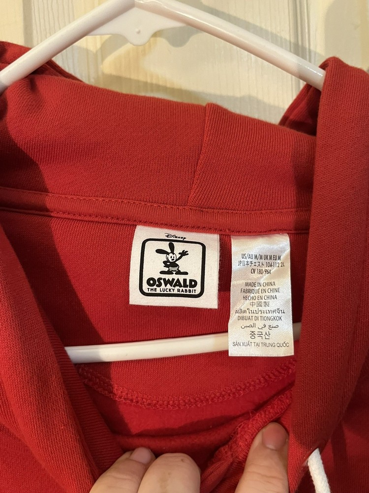 The Disney Cast Member x Oswald The Lucky Rabbit 2-Sided Pullover Hoodie in red, size M, is a collectible item exclusive to Disney Cast Members. Featuring the iconic character Oswald the Lucky Rabbit, this hoodie is a unique addition to any Disney fan's collection. The reversible design adds versatility to the garment, allowing wearers to showcase their love for Disney in different ways.