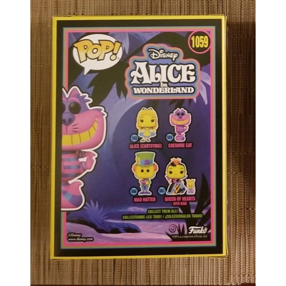 Disneys Alice In Wonderland Cheshire Blacklight funko com exclusive #1059 funko pop. In near mint box condition. Has top of box scratch. Will ship fast and with care!