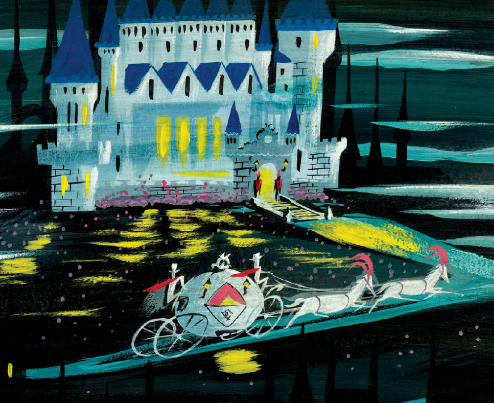 Disney Cinderella Carriage Racing to Castle Concept Art by Mary Blair