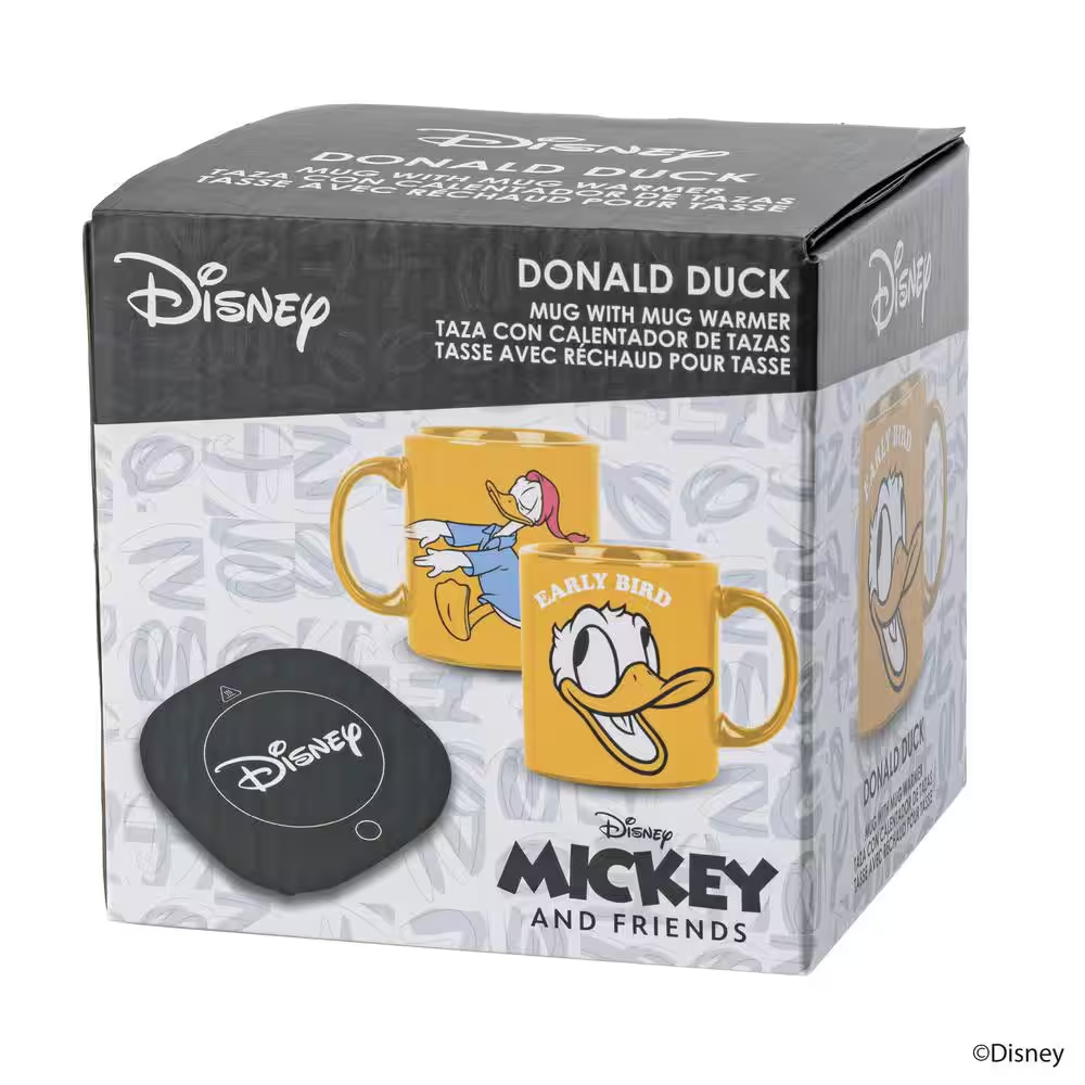 Uncanny Brands Disney Donald Duck 12 oz. mug Warmer Set Keeps Your Favorite Beverage Warm Auto Shut On/Off the Disney Donald Duck mug Warmer set is a quackster way to keep your beverages warm. Featuring the iconic Donald Duck, this set includes a heating plate and a full color, matching 12 oz. ceramic mug. Perfect for enjoying hot drinks at your own pace and adding a touch of Disney whimsy to your break time. Stay warm and entertained with this mug featuring Donald Duck by your side.