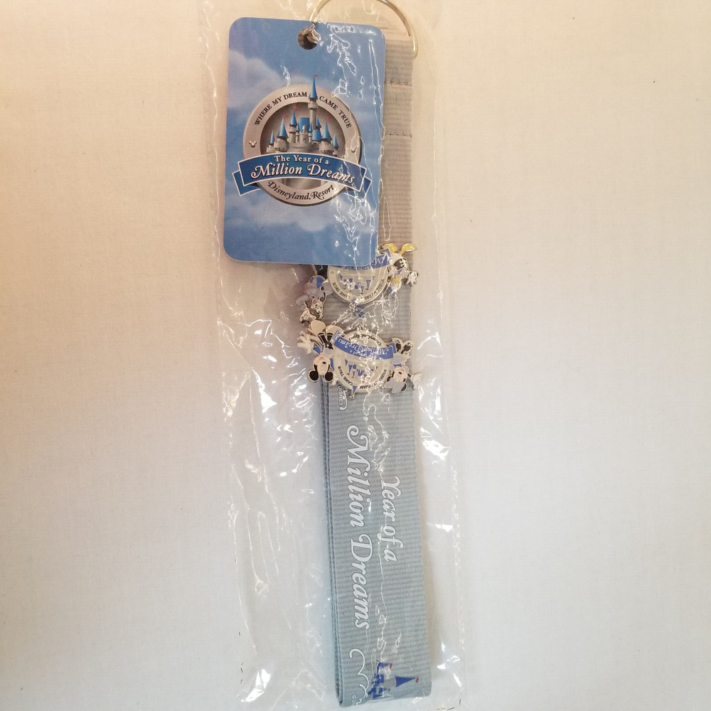 DISNEY Exclusive Year of a Million Dreams LANYARD and TWO TRADING PINS - Mickey Mouse & Minnie Mouse along with Donald Duck and Goofy. The Year of a Million Dreams was October 1, 2006 to December 31, 2007. A year to remember!!! SO, SO Much Fun!!! Brand New in wrapper.