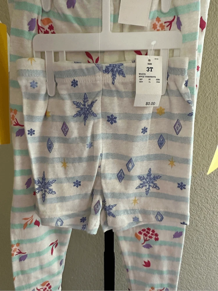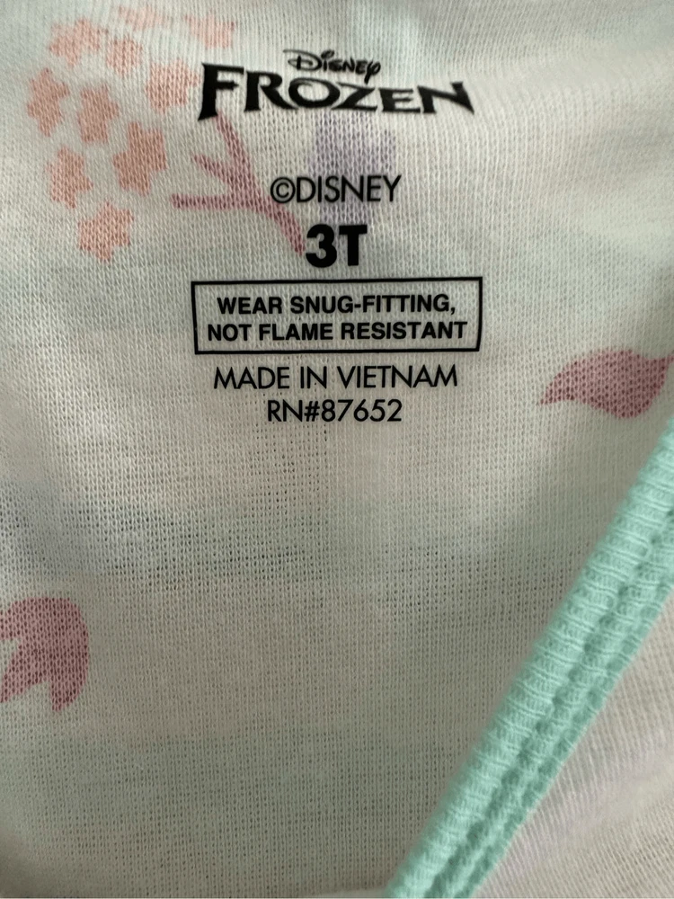 Exterior Color: Multicolor Number of Pieces: 4 Piece Brand: Disney Character Family: Frozen Color: Multicolor Type: Pajama Set Size: 3T Department: Girls