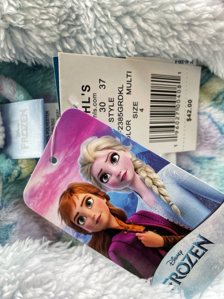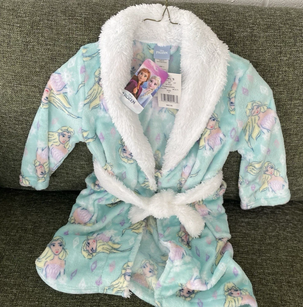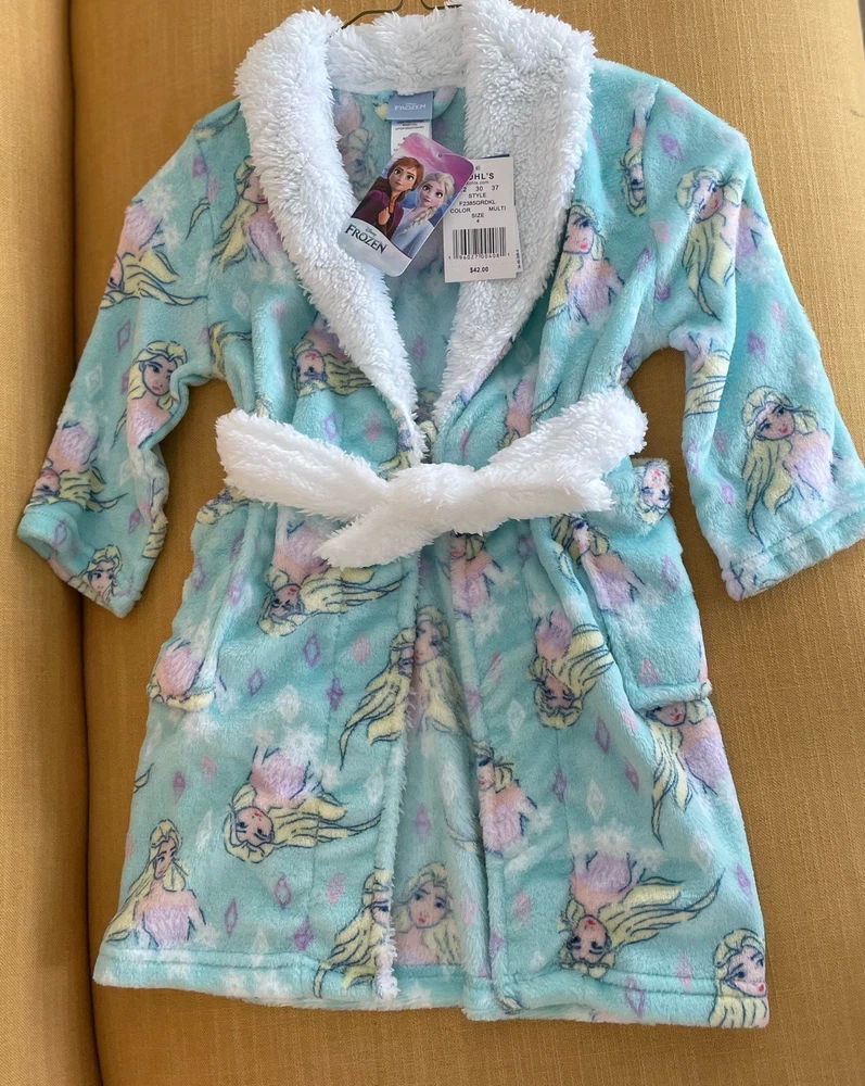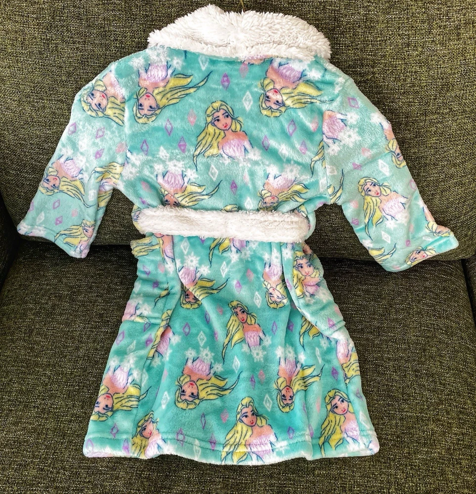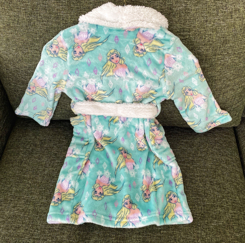 The Disney Frozen Super Plush Girls Robe in size 4 is a cozy and stylish bathrobe featuring Elsa from the popular Frozen franchise. Made from soft polyester fleece fabric, this multicolor robe has long sleeves and a tie closure for a comfortable fit. Perfect for the winter, fall, or spring seasons, this kimono-style robe also includes charming princess-themed details like pockets and a belt. Machine washable for easy care, this robe is a must-have for any young Frozen fan looking to stay warm and stylish.