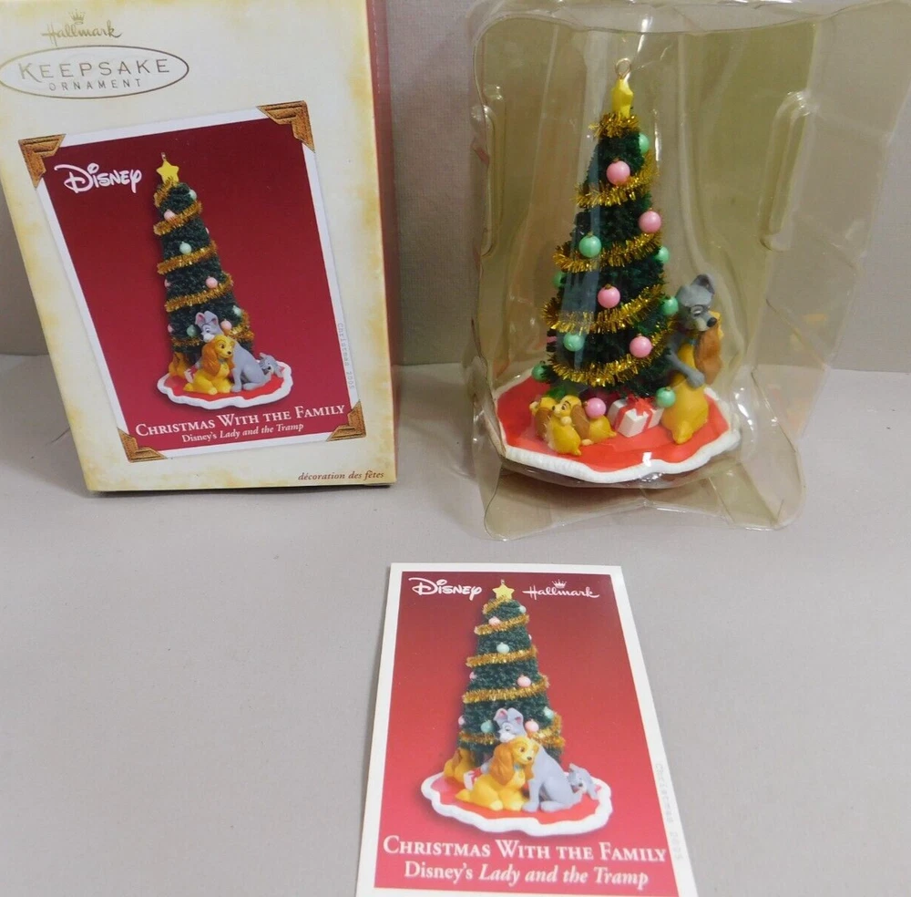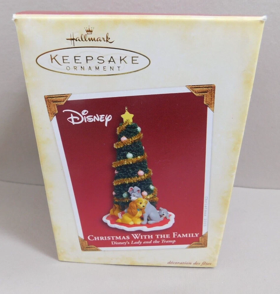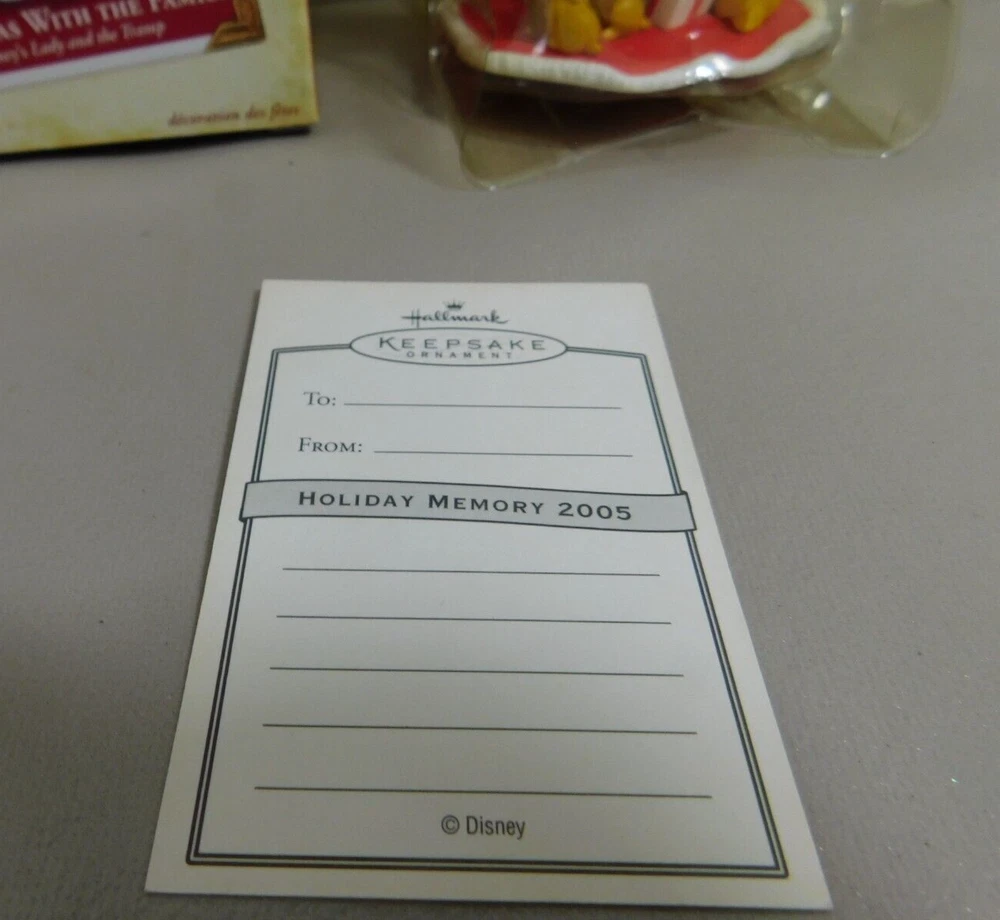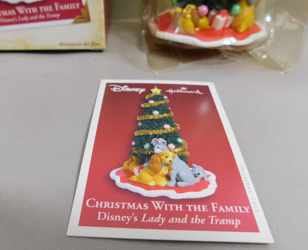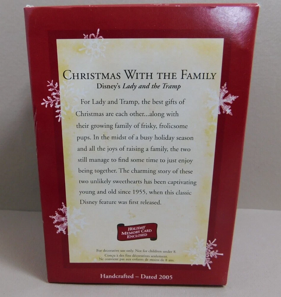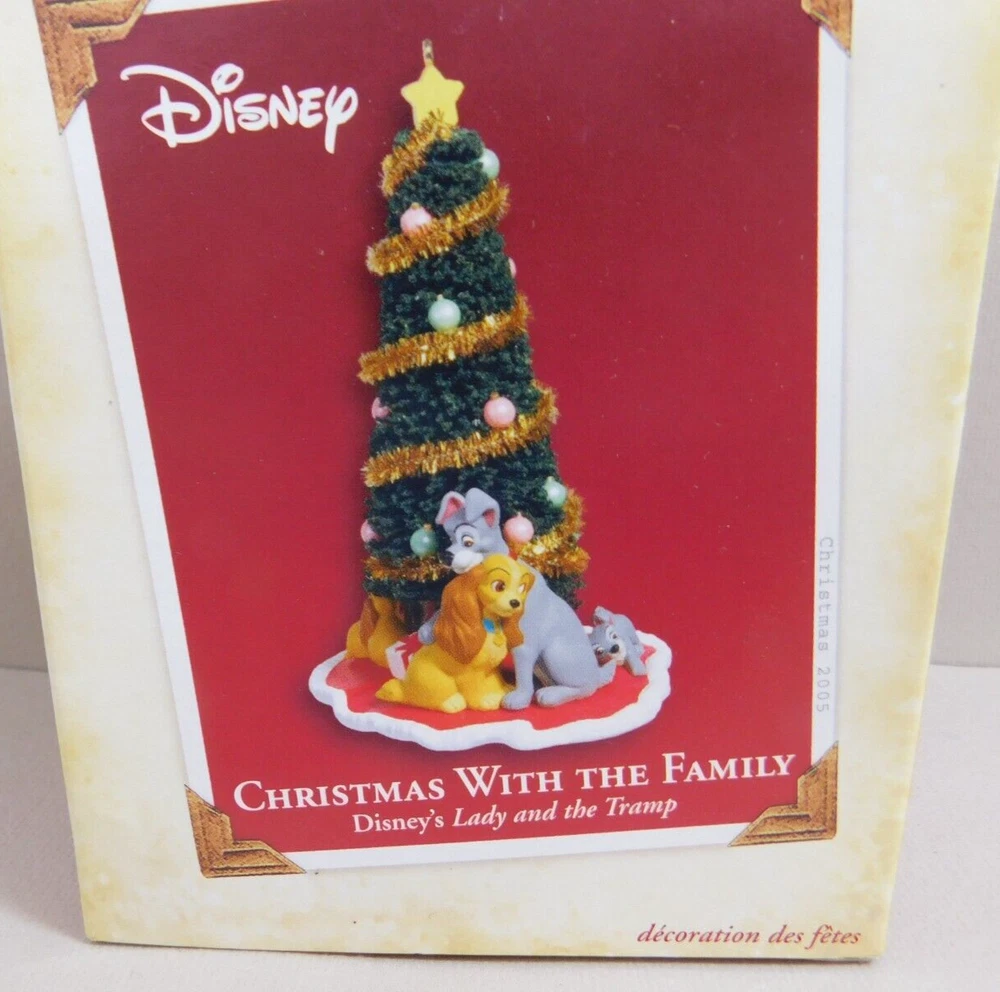 Disney Hallmark Christmas with the Family LADY AND THE TRAMP Ornament 2005 w Box Pre-Owned in Excellent Condition in Original Box. Box has some minor shelf wear. See pictures for Actual Condition. Box has a small tear on top corner - shown in pictures. Please see all pictures as they are part of the description. This is the actual item that you will receive Please ask any questions prior to purchase I do combine shipping Please check Shipping Details for additional shipping methods offered. Costs may vary depending on your location