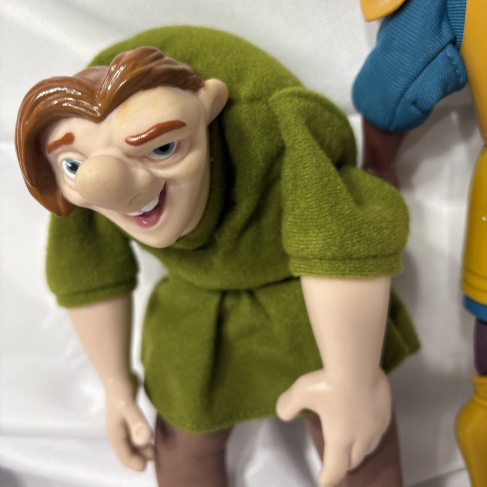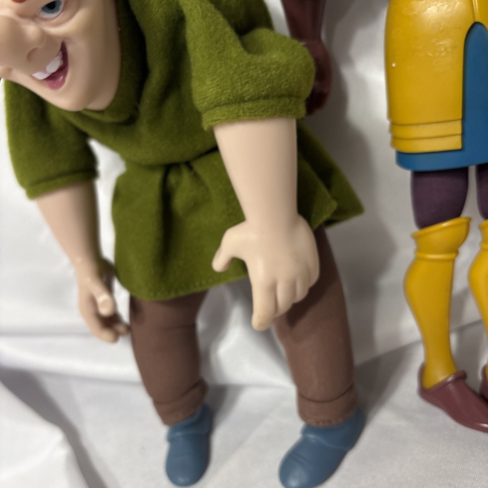 Delve into the enchanting world of Disney with this delightful Hunchback of Notre Dame hand puppet plush, featuring the beloved characters Quasimodo and Phoebus. Perfect for Disneyana collectors or as a whimsical plaything for children, this plush captures the charm and whimsy of the classic tale. Crafted with care, it's a lovable representation of Disney's commitment to bringing its stories to life. With no particular condition concerns to mention, this item is a straightforward piece of Disney magic. Ideal for recreating your favorite movie moments or simply enjoying as a cuddly companion, this plush toy is a celebration of the enduring legacy of Disney's cinematic masterpieces and a must-have for any Disney enthusiast.