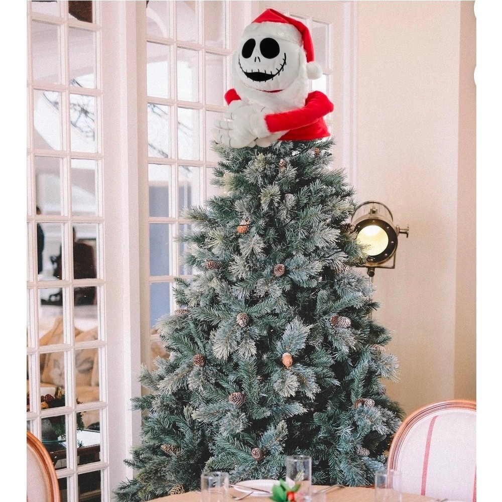 Bring a touch of spooky holiday cheer to your Christmas tree with this enchanting Jack Skellington Tree Hugger. His iconic grinning face, framed by a fuzzy Santa hat and beard, is instantly recognizable and sure to delight fans of Tim Burton's classic film. Designed to 'hug' your tree, this plush character adds a whimsical and festive focal point to your holiday decor. Perfect for Christmas trees, holiday parties, or as a unique gift for any Nightmare Before Christmas enthusiast. Measurements: • Height: 11.81 in • Width: 8.27 in • Depth: 4.72 in Type: Ornament Set Includes: Tree Hugger Subject: The Nightmare Before Christmas Shape: Santa Claus Occasion: Christmas Features: Hanging Franchise: The Nightmare Before Christmas Material: Faux Fur, Fabric Number of Items: 1 Theme: Christmas Character: Jack Skellington Time Period Manufactured: 2010-2019 Keywords: Jack Skellington, Nightmare Before Christmas, Tree Topper, Santa Hat, Plush, Disney, Holiday Decor, Christmas Decoration, Tim Burton, Spooky, Festive, Character, Collectible