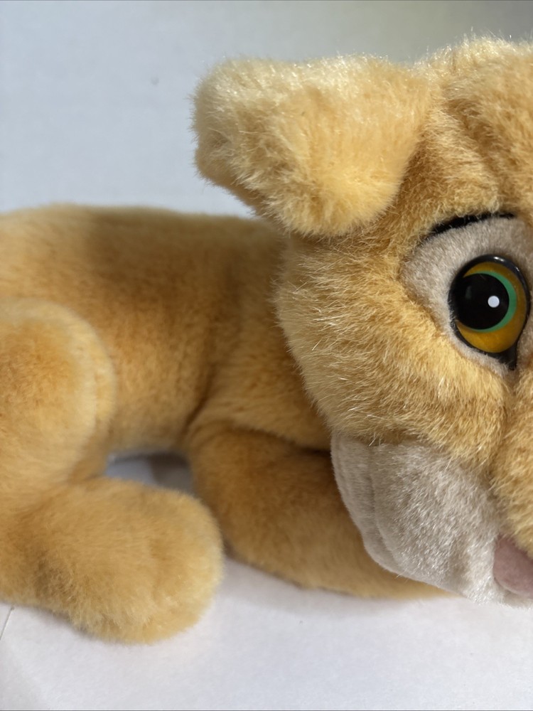 This adorable 14" plush Baby Simba stuffed animal from Walt Disney World Disneyland is a must-have for any Lion King fan. With its soft and cuddly texture, it's perfect for snuggling or adding to your Disneyana collection. The plush toy features Simba's iconic look with its orange and red fur, and is made with high-quality materials for long-lasting play or display. Whether you're a collector or just looking for a fun toy, this Baby Simba plush is sure to delight fans of all ages. It's the perfect gift for any Lion King enthusiast or a charming addition to your own collection. Get ready to roar with joy with this delightful Disney plush toy!