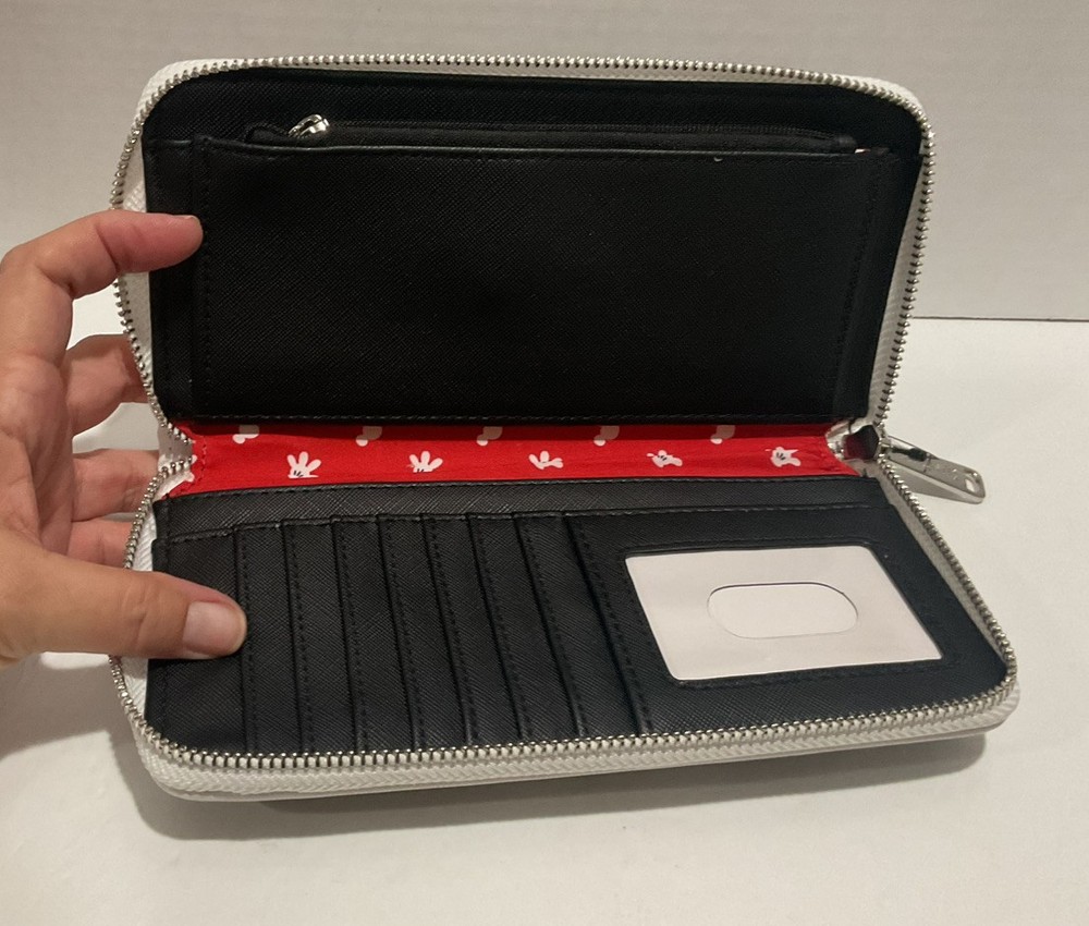 This Disney Loungefly wallet is a must-have for any fan! The black and white design is sleek and stylish, while the zip closure keeps everything secure. It's compact yet surprisingly roomy, with plenty of slots for cards and cash. The quality is fantastic—durable, well-stitched, and feels premium. Perfect for everyday use or as a fun accessory to show off your Disney love. The hardtag adds a cute touch, making it stand out. Highly recommend for both practicality and charm!