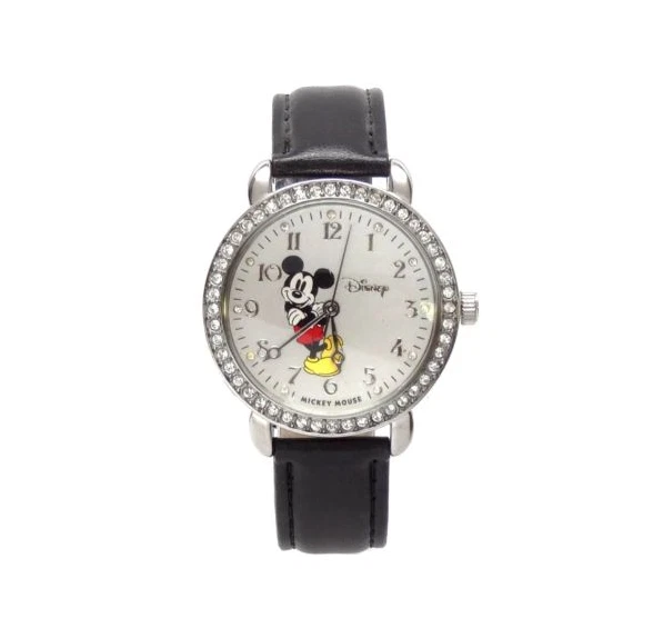 Product Description Quartz movement Quartz movement Case diameter: 35 mm Metal case; Silver dial; Date function Who knew Mickey could look so cool? This hip women's watch from Disney features a fresh, fun Mickey Mouse graphic that stands out against a silver-tone dial that's studded with Swarovski crystals at each Arabic numeral hour marker to complement the crystal-embedded bezel. A chic black leather band joins to this watch's round, metal case and brings out the beauty of its silver-tone hands. Returns are accepted. Buyer must contact us within three days of receiving the items. Buyer must be return or exchange within 30 business days of the purchase. However, the product must be returned in its initial condition. Item return must be with tracking delivery confirmation number. If you have any further questions or concerns, feel free to contact us we will reply back as soon as possible.