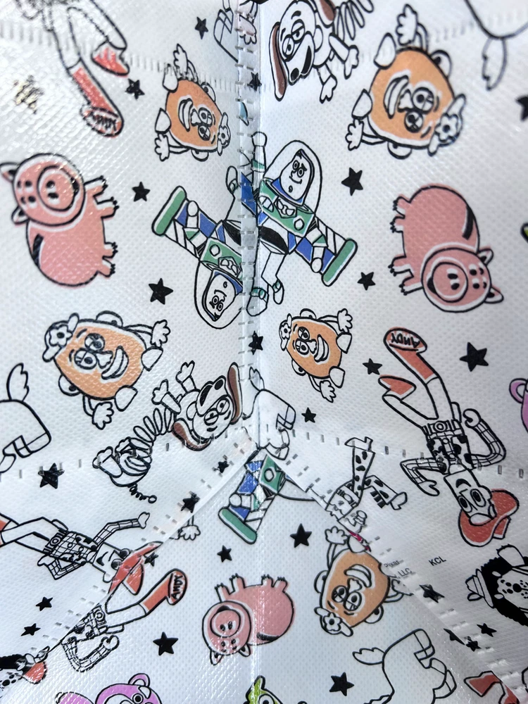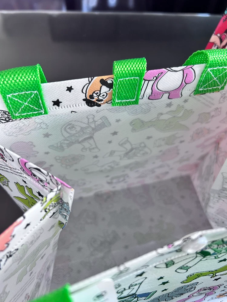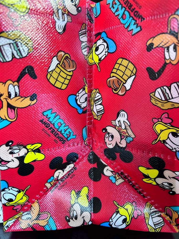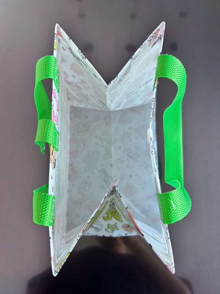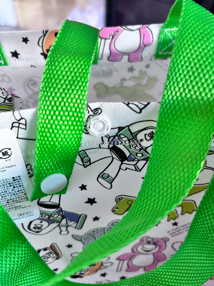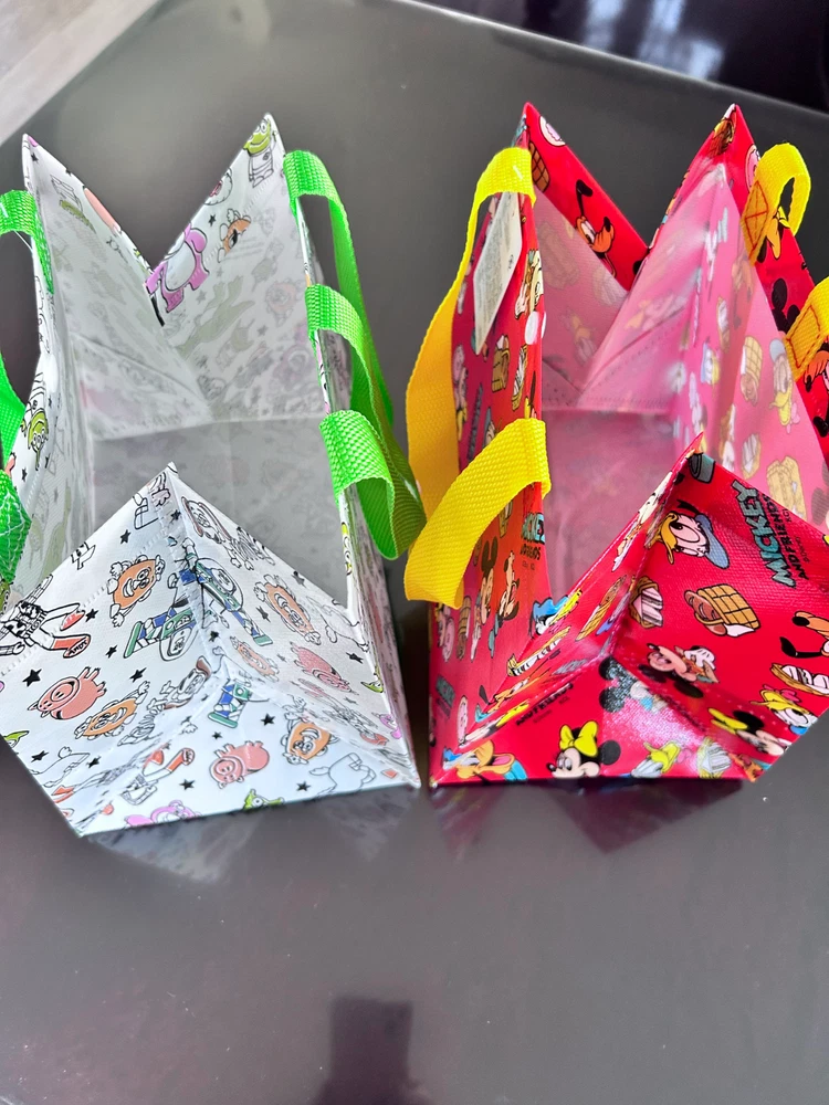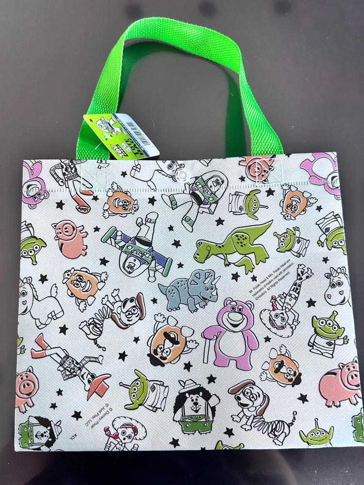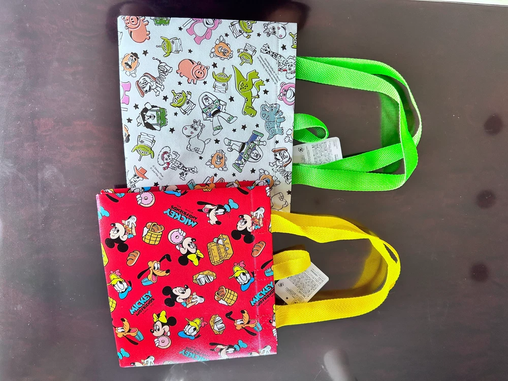 Bags for "Mickey and Friends" and "TOY STORY" New. Size 21cm x 24.5cm x 17cm The gusset is 17cm wide, so it can hold a lunch box, etc. This is a set of two very cute bags.