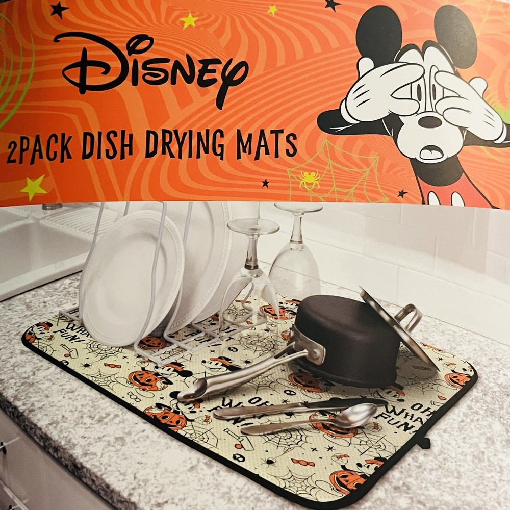 Disney Mickey Mouse 2 Pack Dish Drying Mat 16”x18” Halloween Oh What Fun Pumpkin