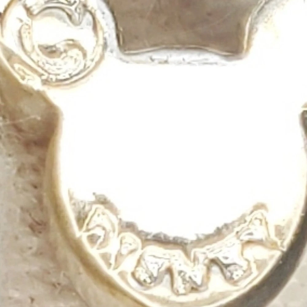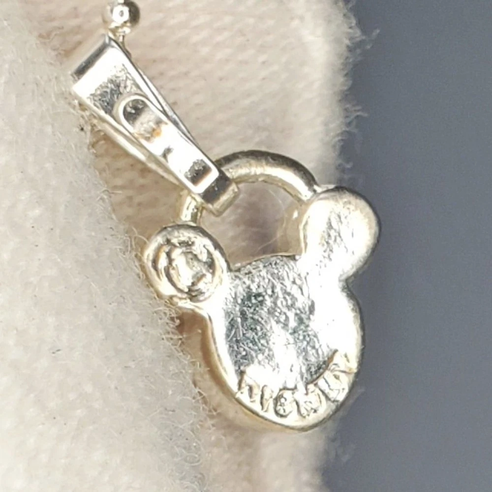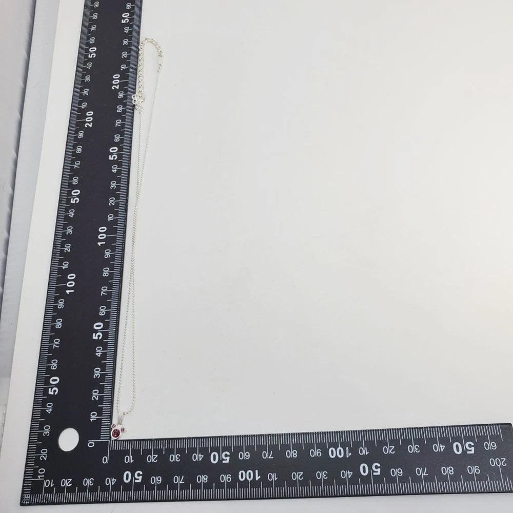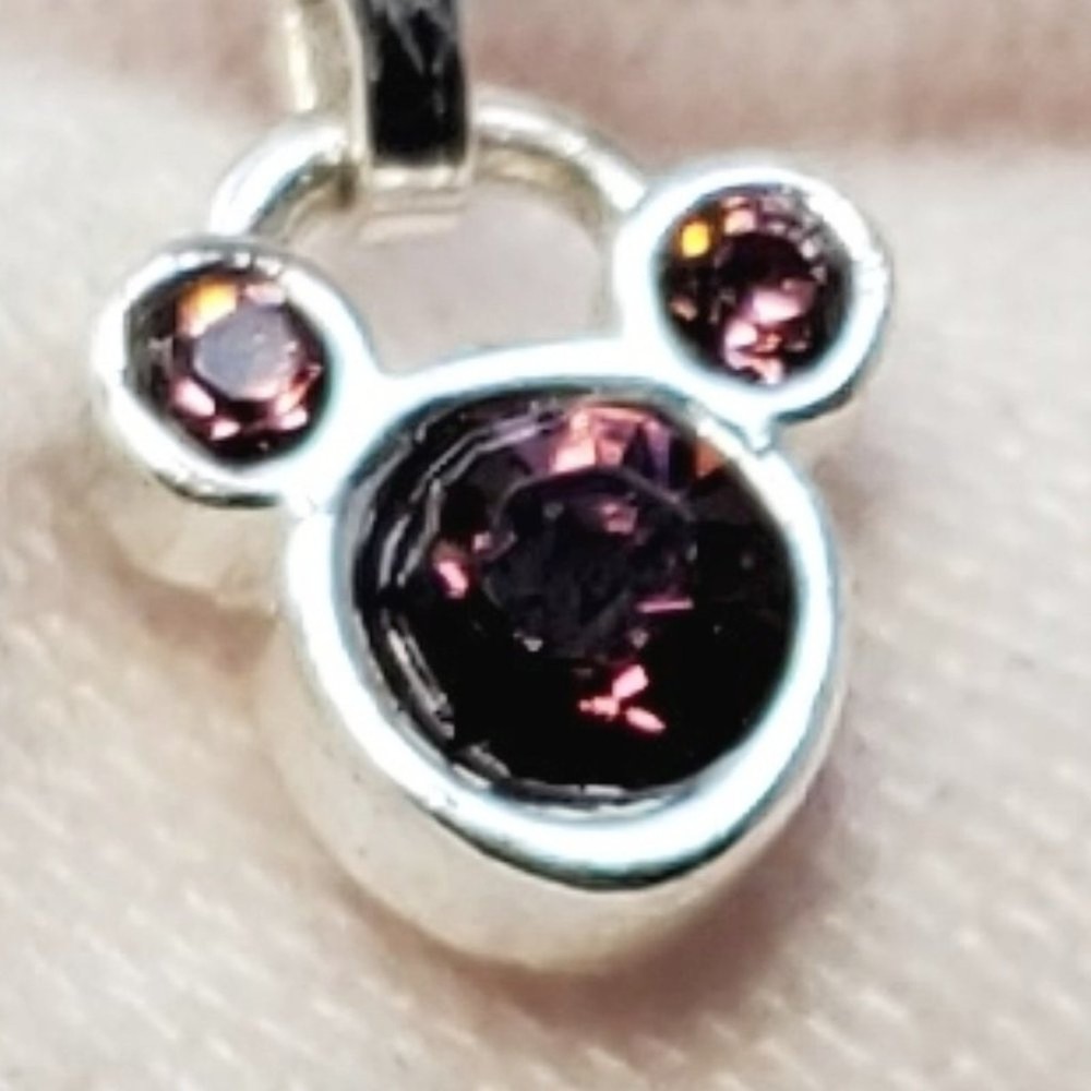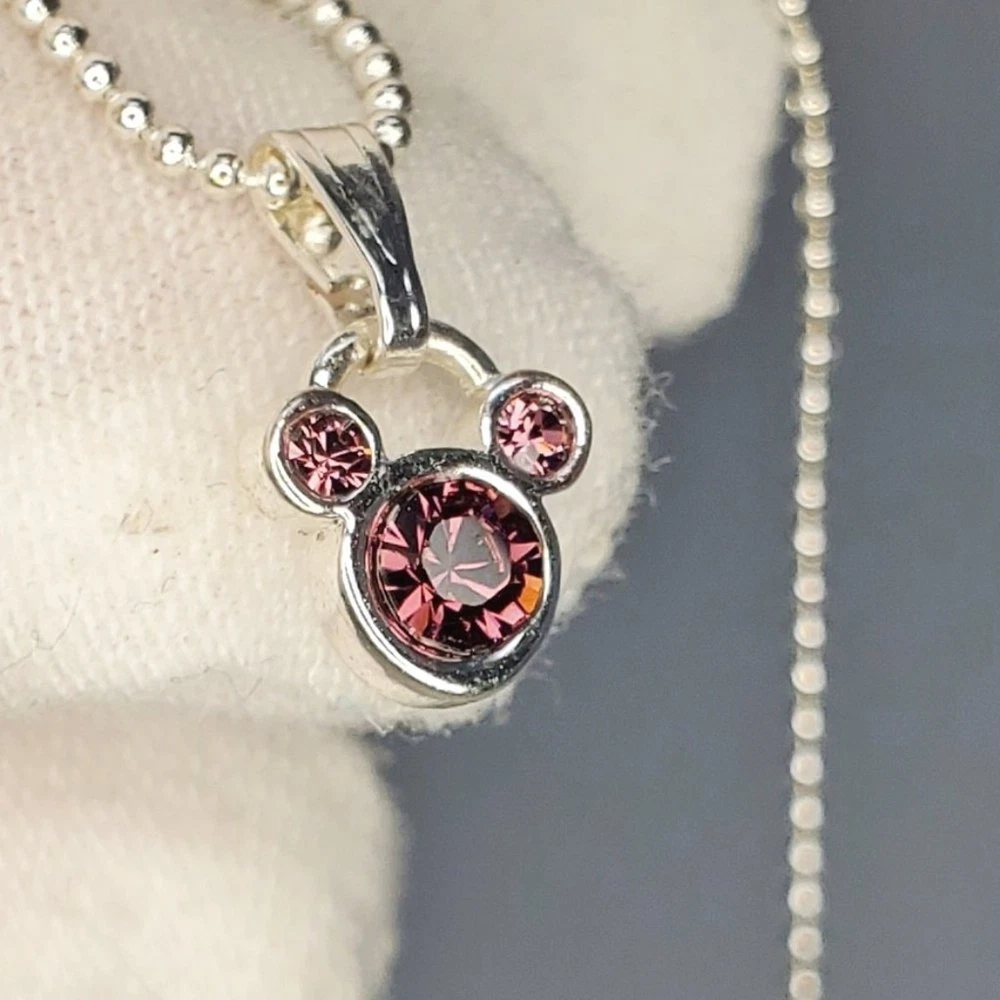 Embrace the magic of your birth month with our Disney Mickey Mouse July Birthstone Necklace. This exquisite piece features a stunning purply maroon birthstone gem encased in a silver-toned pendant, showcasing the iconic Mickey Mouse. Delicate rhinestones set within the silver-toned metal add a touch of elegance and sparkle, making this necklace a perfect gift for anyone born in July. It comes with a stylish silver-toned ball chain that beautifully complements the pendant. The adjustable chain ensures a comfortable and personalized fit for every wearer. With the Disney stamp on the back, this necklace guarantees authenticity as a genuine Disney collectible, reflecting the highest standards of quality and craftsmanship. Celebrate your birth month in style and let the iconic Mickey Mouse add a touch of silver-toned splendor to your jewelry collection. Size: Measurements photographed are in Millimeters Condition: Well worn Have a magical day Pet-free, smoke-free home.