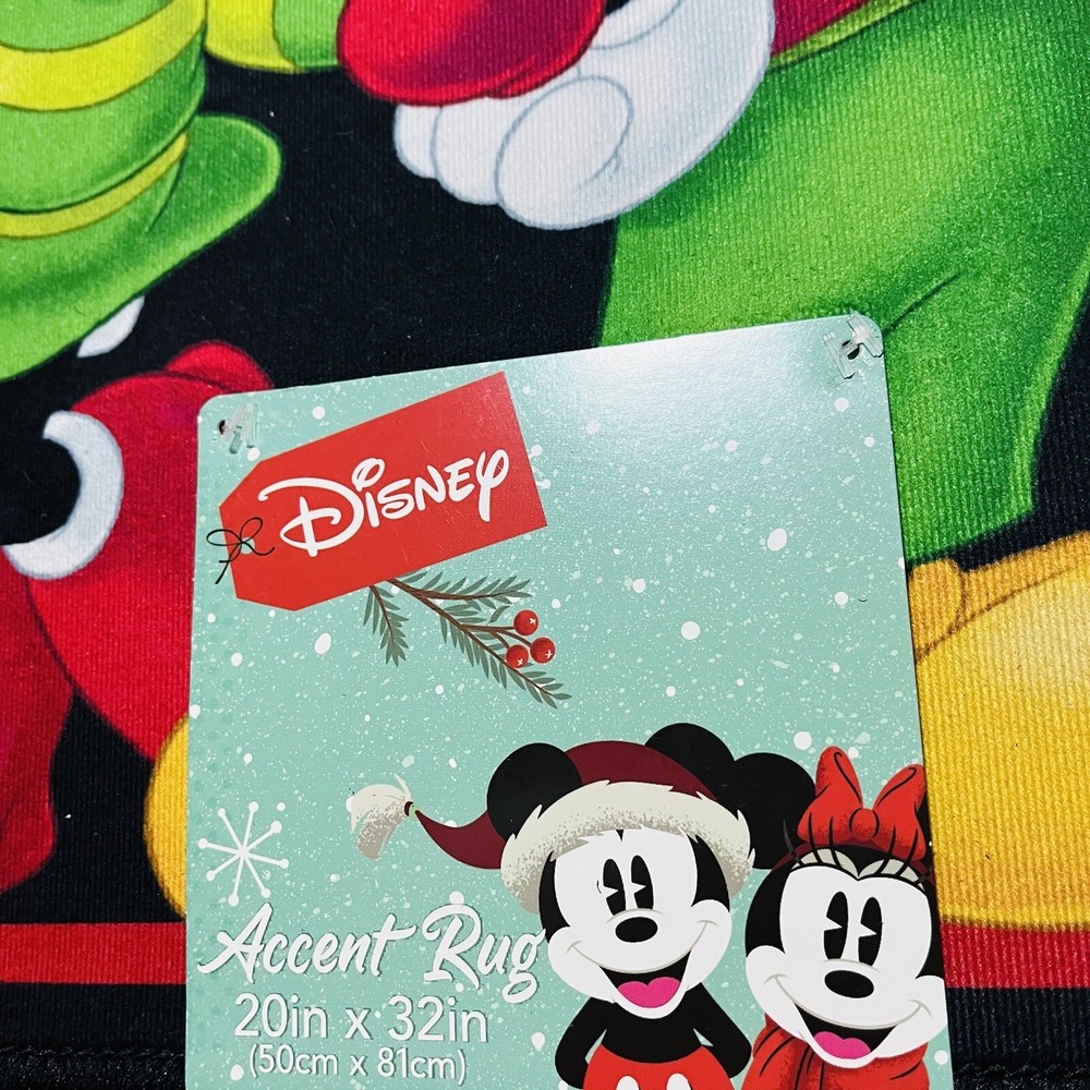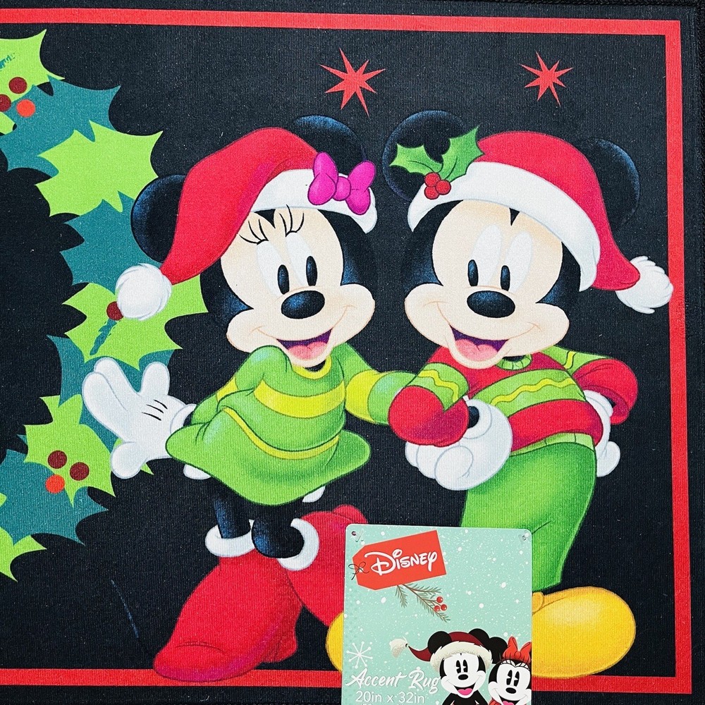 Disney Mickey Mouse Merry Christmas Santa Hat Gift Mat Rug 20”x32” Mistletoe Red