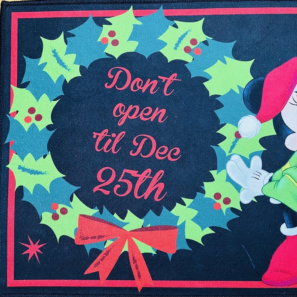 Disney Mickey Mouse Minnie Christmas Mat Rug 20”x32” Don’t Open Til Dee 25th Blk