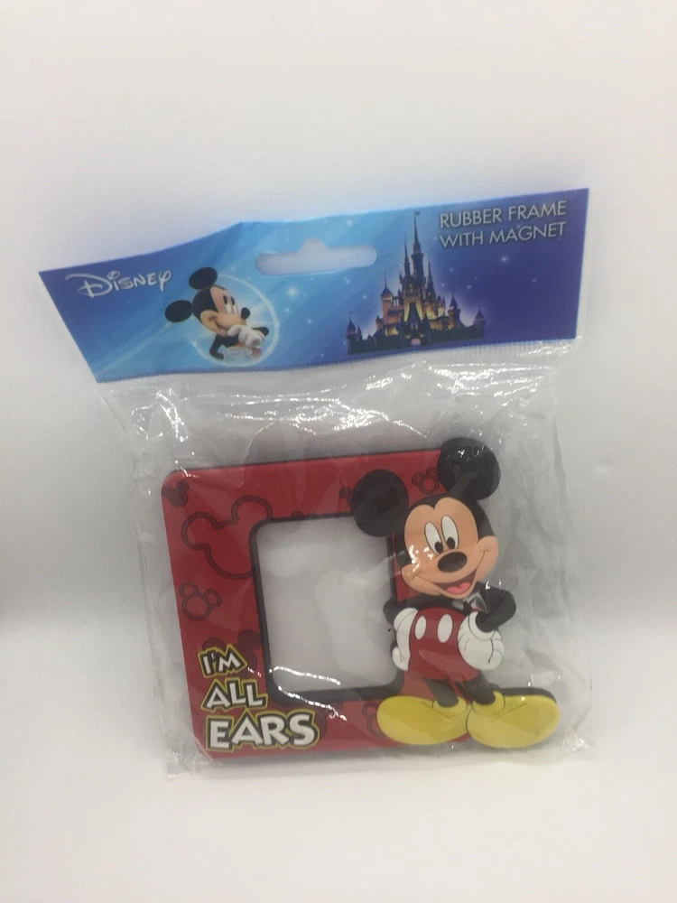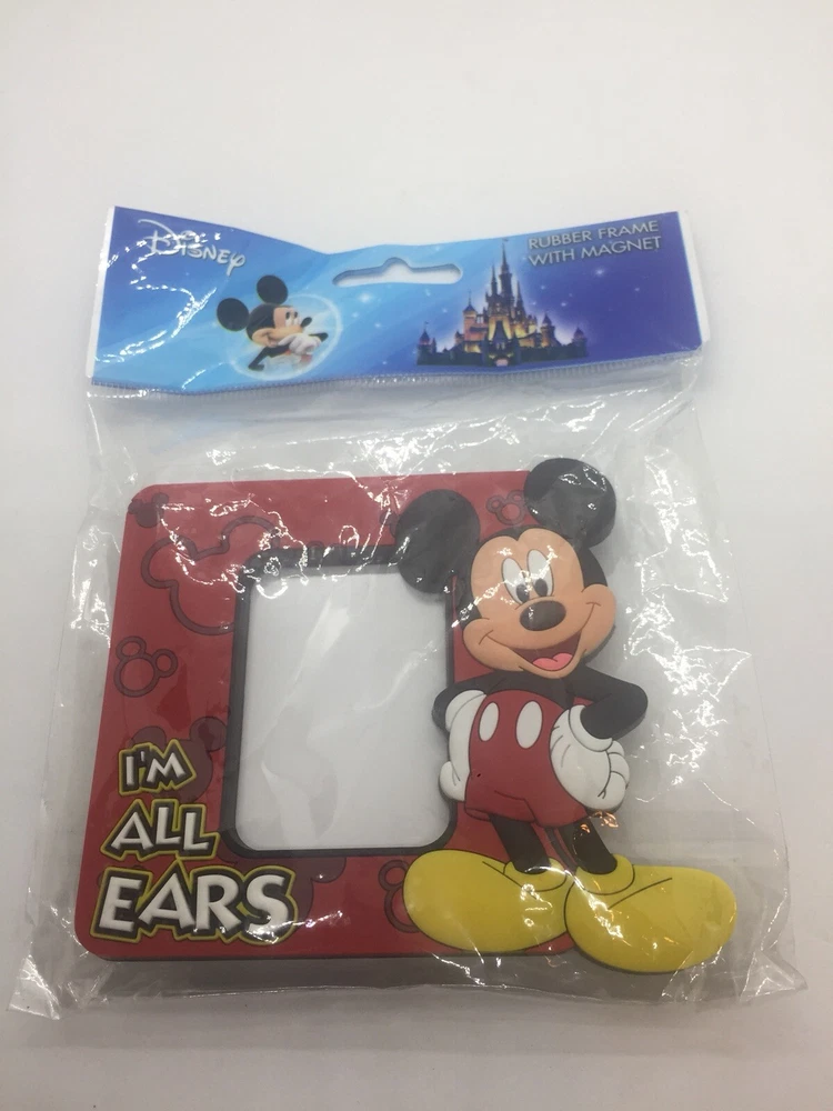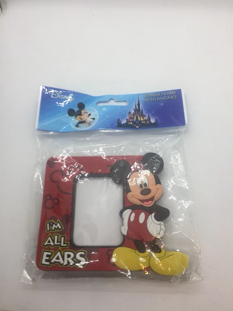A Disney Mickey Mouse Rubber Photo Frame With Magnet I’m All Ears Brand New Sealed Made In China. The package measures 5.25” long, 6.25” high, and 0.75” deep. Immediate payment required for purchase.