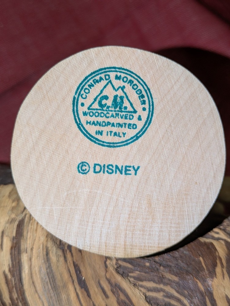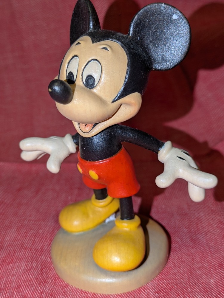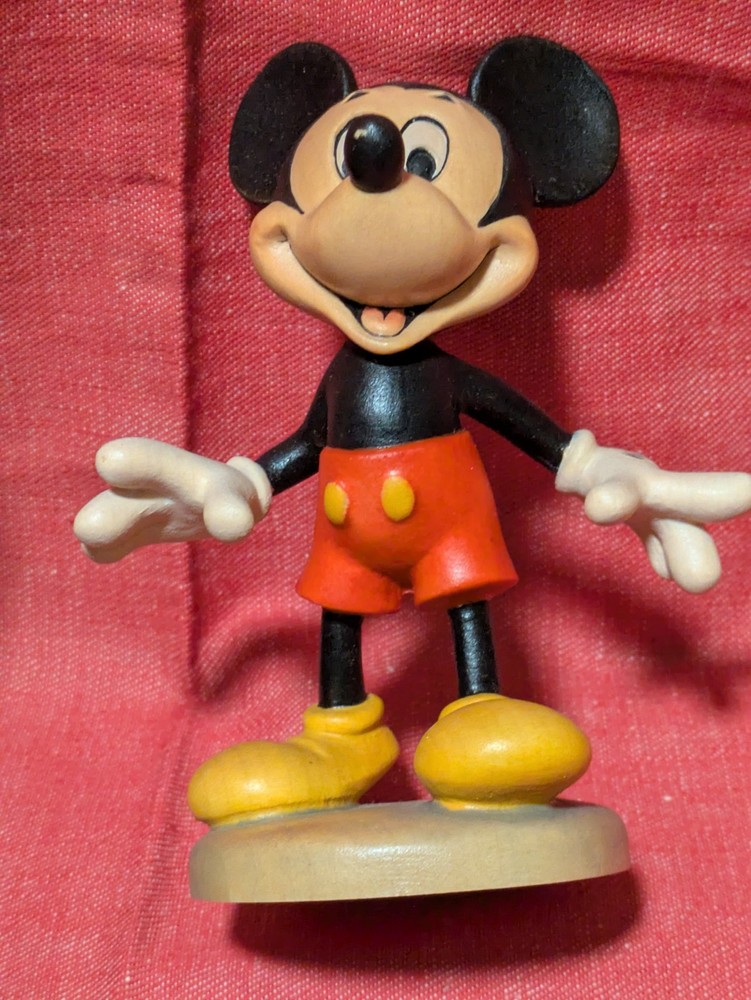Walt Disney Mickey Mouse Figure. Very rare Hand crafted and Hand Painted by Conrad Moroger in Italy. This beautiful five inch tall figure was sold through Walt Disney World Productions. Classic MIckey Mouse all wood figure designed from the Walt Disney cartoon classic look of the 1940's to the 2000's.