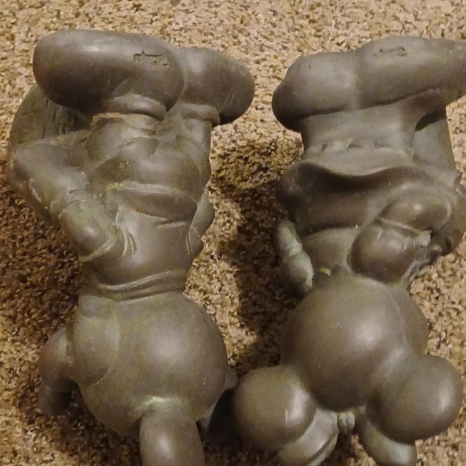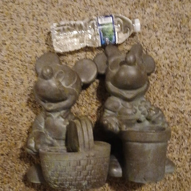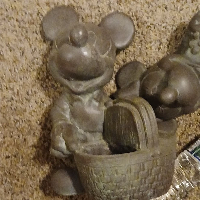 The product is a set of Disney Mickey and Minnie Mouse garden figurines from 1997, designed as a flower planter. These collectible items are part of the Disney franchise and feature the beloved characters of Mickey Mouse. The figurines are a unique addition to any Disney collection or can add a whimsical touch to a garden or potluck display. Made by Disney in 1997, these figurines are a nostalgic piece of Disneyana from that era. Great way to make memories with your loved ones as they are made of rubber like material made for painting.