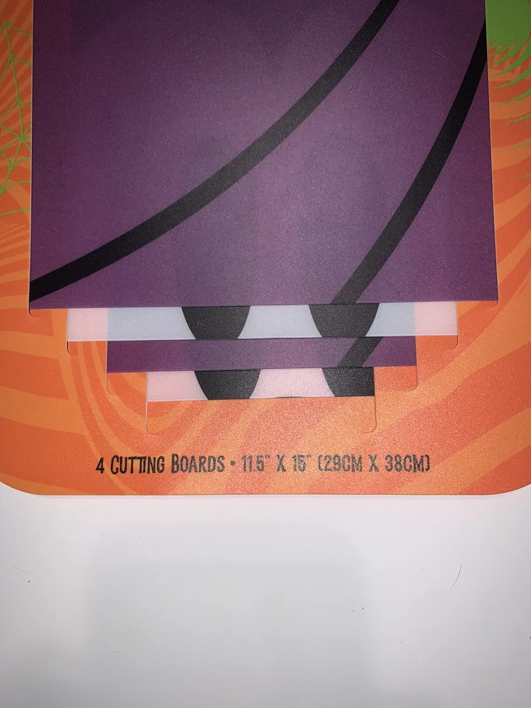Type: Cutting Board Shape: Rectangle Size: 11.5”x15” Color: Multicolor Theme: Mickey Mouse Halloween Number of Items in Set: 4 Model: Disney Mickey & Minnie Mouse Brand: Disney Material: Plastic