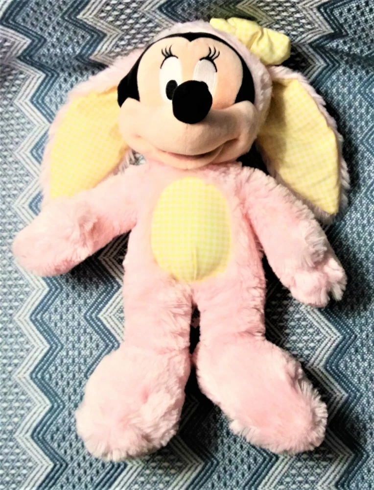 Disney Minnie Mouse Easter Pink Bunny Rabbit Costume 14" Stuffed Animal Plush used in good condition