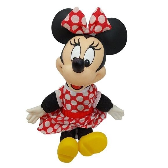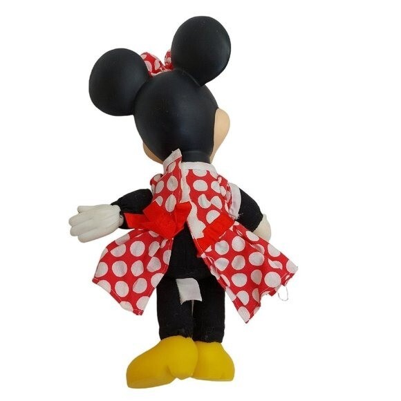 Has scuffs on nose and mark on dress. Please see attached photos Disney Mouseketoys Minnie Mouse rubber faced vintage 15" doll