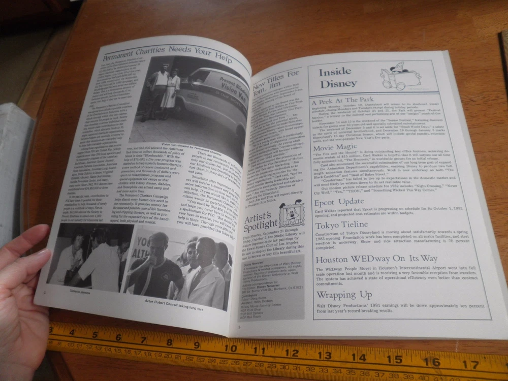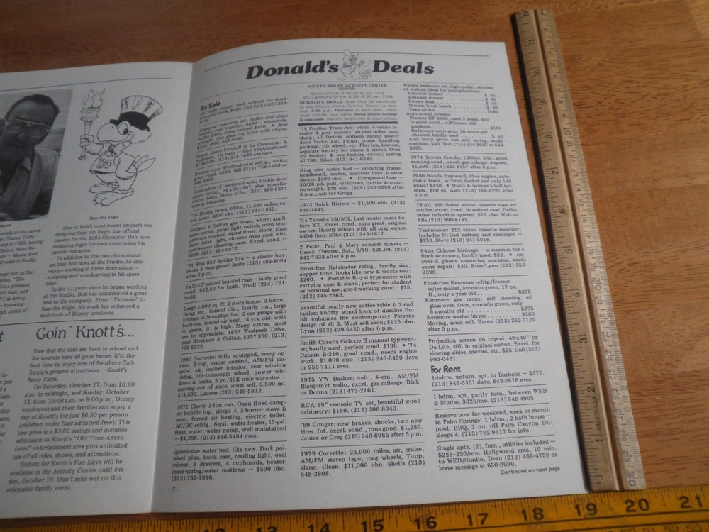 This is a great Disney Studio Newsreel magazine for the employees of Walt Disney Productions and WED/MAPO. It has all of the dirt on the filmings of the time along with activities for employees of the Disney parks and world. Great Piece Act fast on this one! Most items ship within 24 hours of payment. I understand that quality and accurate descriptions make for a quality transaction. You will get exactly what has been described. Check out my store and buy multiple items to save on shipping. Combined shipping is the best way to go. Enjoy.