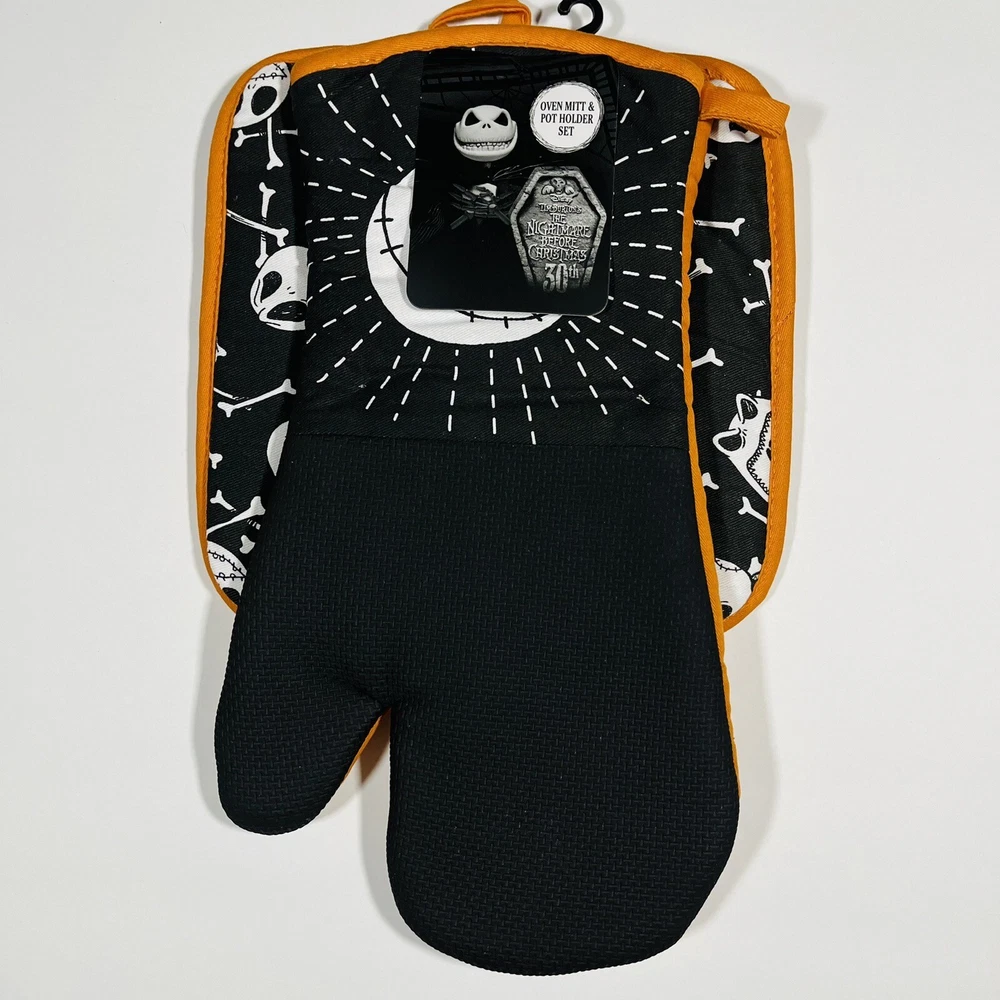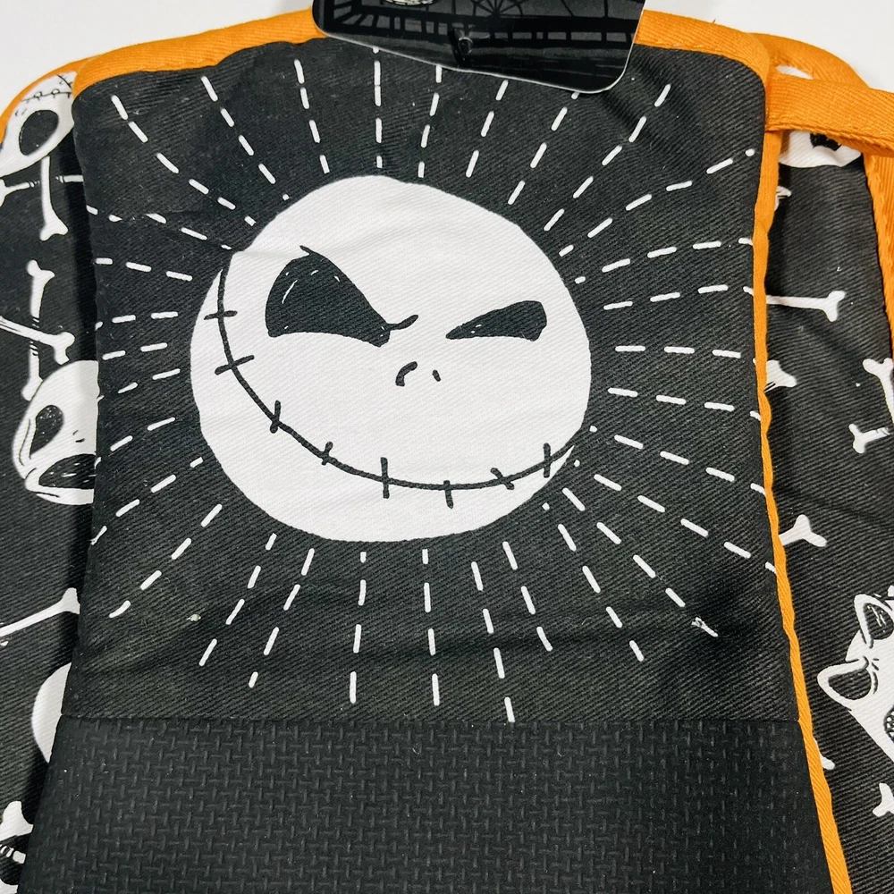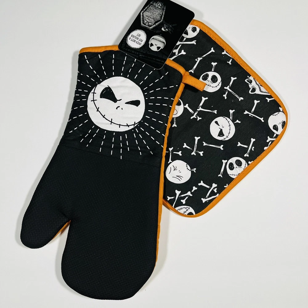 Set Includes:Oven Mitt, Pot HolderCharacter Family:The Nightmare Before ChristmasOccasion:HalloweenBrand:DisneyType:Oven Mitt Pot HolderCharacter:Jack SkellingtonNumber of Items in Set:2Department:HomeCustom Bundle:NoPattern:HalloweenModel:Disney The Nightmare BeforeMaterial:100% Cotton, 100% PolyesterSize:MultipleTheme:HolidayColor:Multicolor