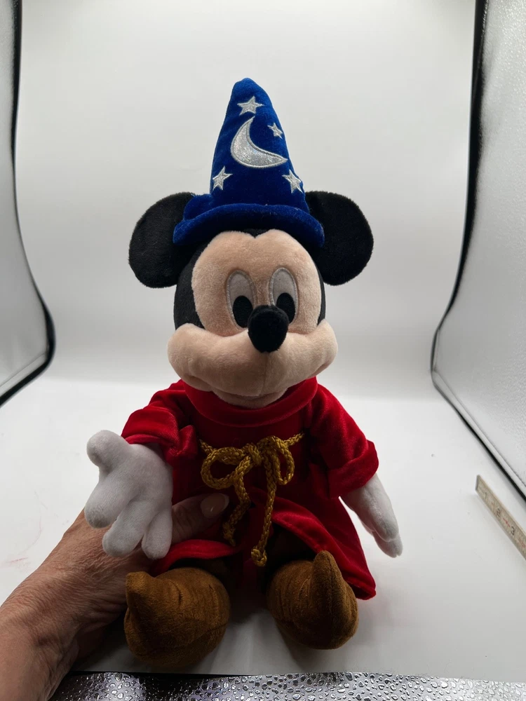 This Disney Parks 13" Fantasia Mickey Mouse The Sorcerer's Apprentice Stuffed Plush is a collectible item featuring the iconic character Mickey Mouse from Disney's Fantasia. Made by Disney Themepark Merchandise, this plush toy is based on the contemporary character design and is manufactured in China. Perfect for fans of Disney collectibles, this officially licensed merchandise captures the magic and charm of the beloved Disney franchise.