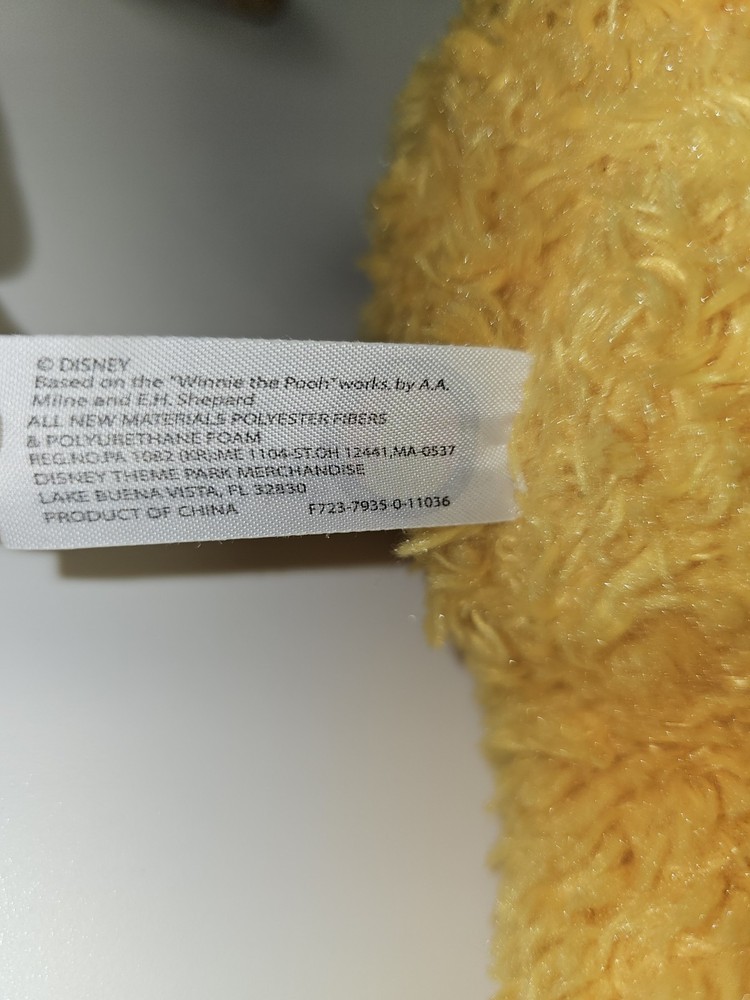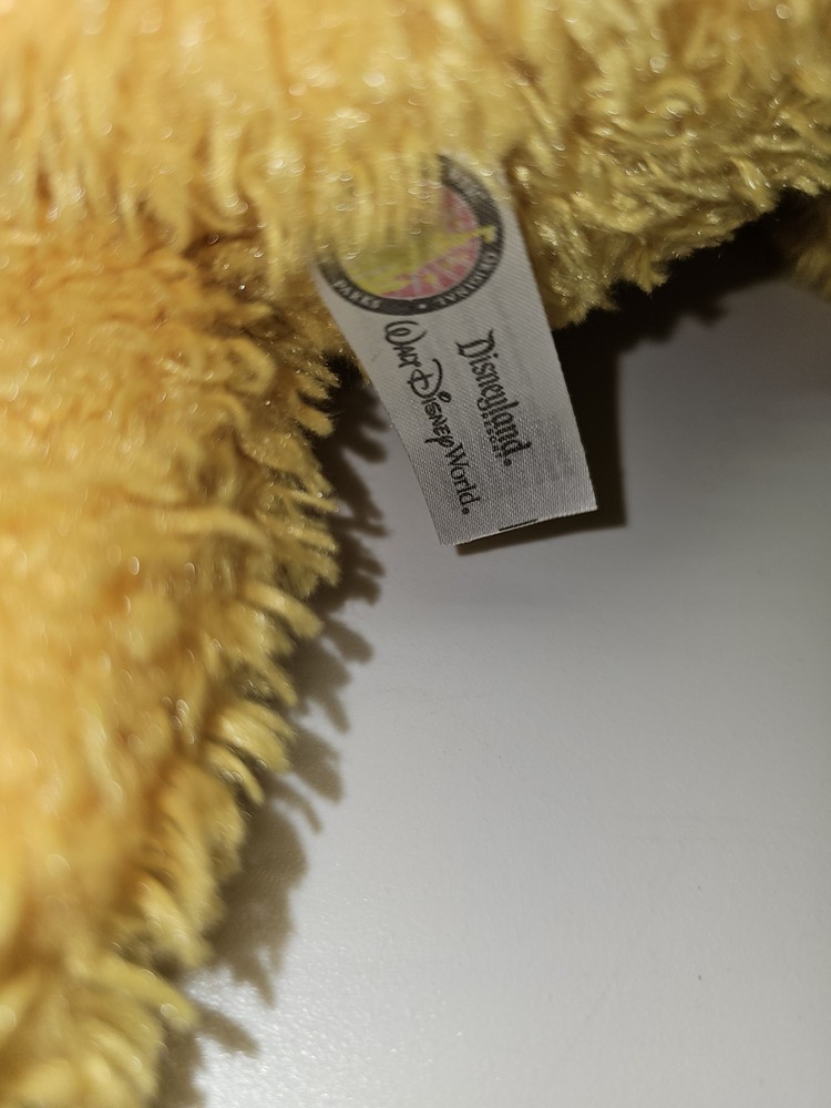This adorable 14-inch Winnie the Pooh plush is an official Disney Parks collectible, sold at Disneyland and Walt Disney World. Pooh features soft, fuzzy golden fur, a red velvety "Pooh" shirt, and classic embroidered facial details. Brand: Disney Theme Park Merchandise Character: Winnie the Pooh Height: Approx. 14 inches Material: Polyester Fiber & Polyurethane Foam Tag Info: Marked with Disney Parks, Disneyland/Walt Disney World label Color: Yellow with red shirt Condition: Pre-owned in very good condition. There are a few light scuffs on the plastic nose (see close-up photo), but the plush is clean with no holes or stains. Original tag still attached.