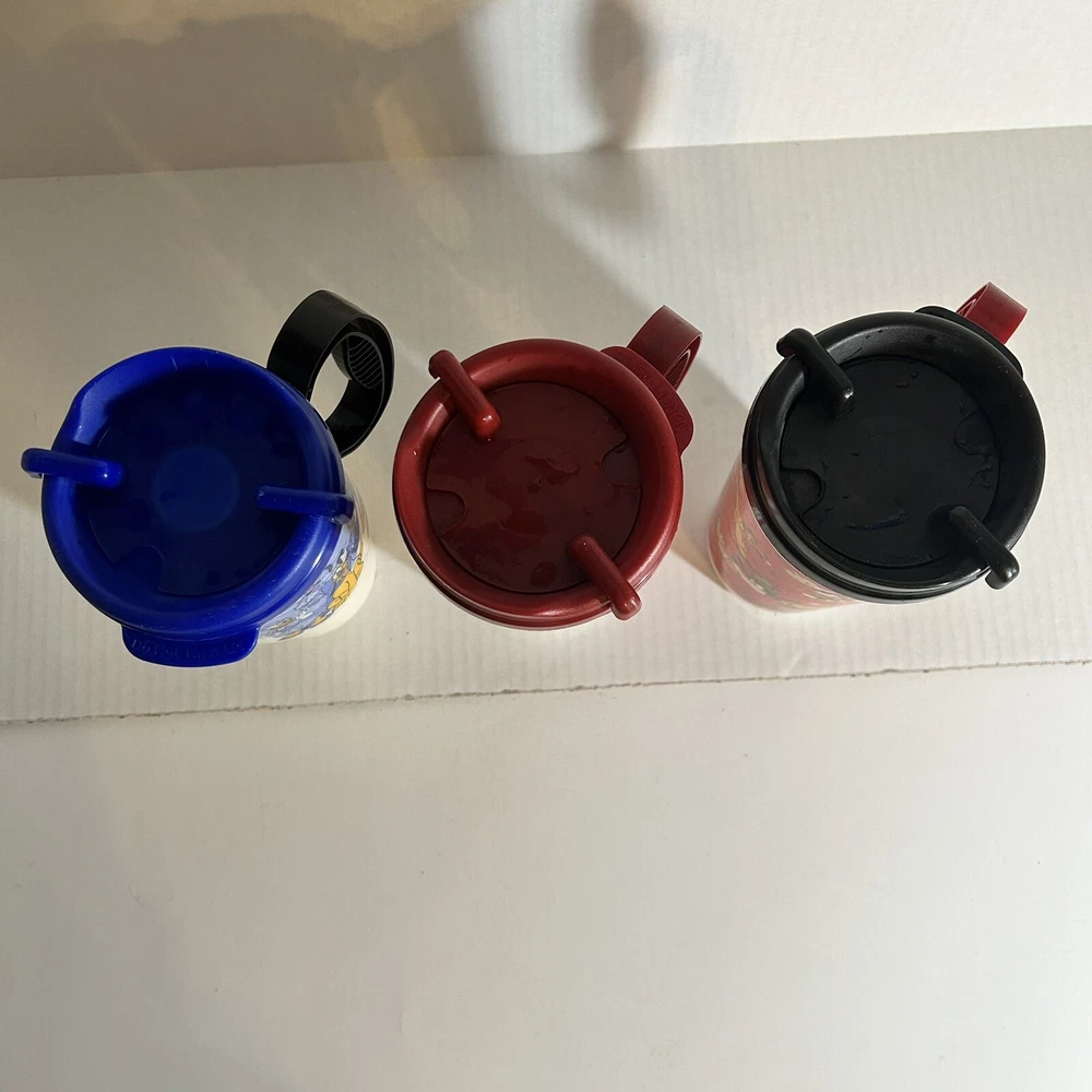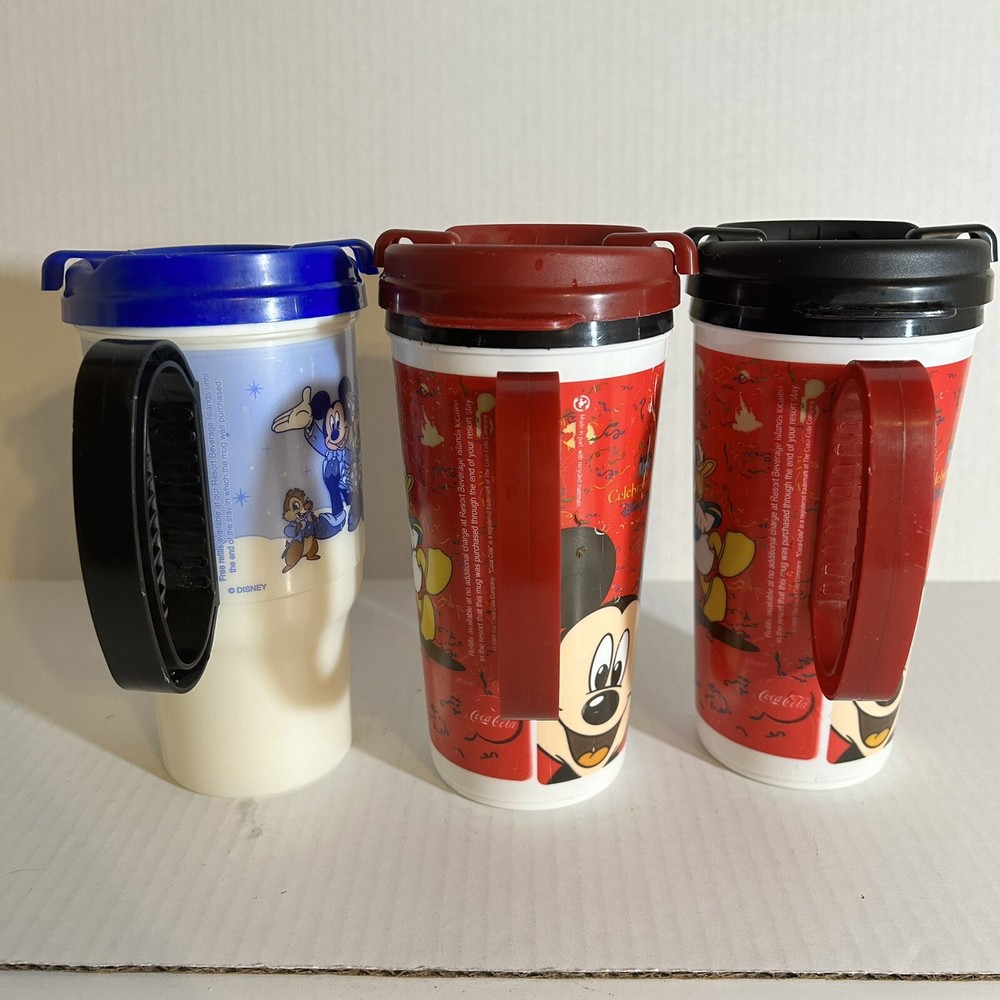 Disney Park refillable Coca Cola Plastic Cups are in good condition, with some wear from previous use: scratched plastic. Please see Photos for Condition of Items. This lot includes three Disney Parks refillable Coca Cola plastic cups with lids from 2007-2009. The cups feature the beloved character Mickey Mouse and are perfect for any Disney fan or collector. Made of durable glass and with a unique design, these cups are a must-have for any Disneyana collection. The cups are from the Contemporary (1968-Now) era and are an authentic piece of Disney history. Don't miss out on the chance to add these rare collectibles to your collection!