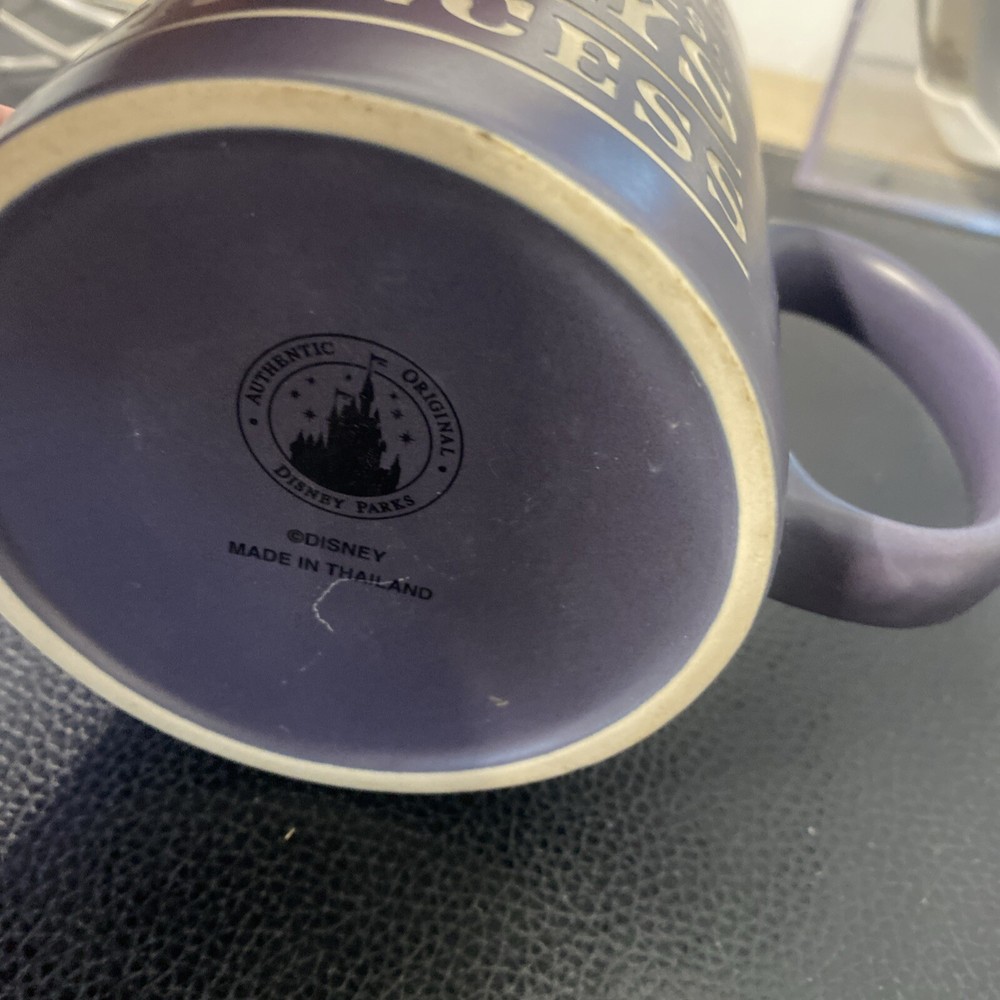 Disney Parks Cinderella mug is a collectible item that features a design with the character Cinderella and the text "Once a Princess Always a Princess". The mug has a capacity of 14 oz and is made in Thailand. It is a contemporary item that was manufactured after 1968. The mug is branded with the Disney Parks logo and is a featured refinement for Disney fans.