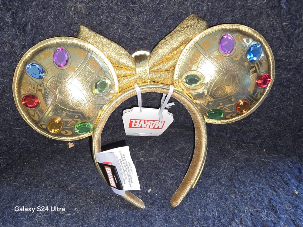 Bring home a piece of Disney magic with this Gauntlet Ears Headband featuring the iconic Infinity Stones design. The perfect accessory for any Marvel fan, this headband is made with high-quality materials and attention to detail. The brand, Disney, is known for its quality and this headband is no exception. With its contemporary design, this headband is a great addition to any Disneyana collection. The headband is perfect for adding a touch of style to any outfit and is suitable for any occasion. Whether you're a collector or just a fan of the Marvel franchise, this headband is a must-have accessory.
