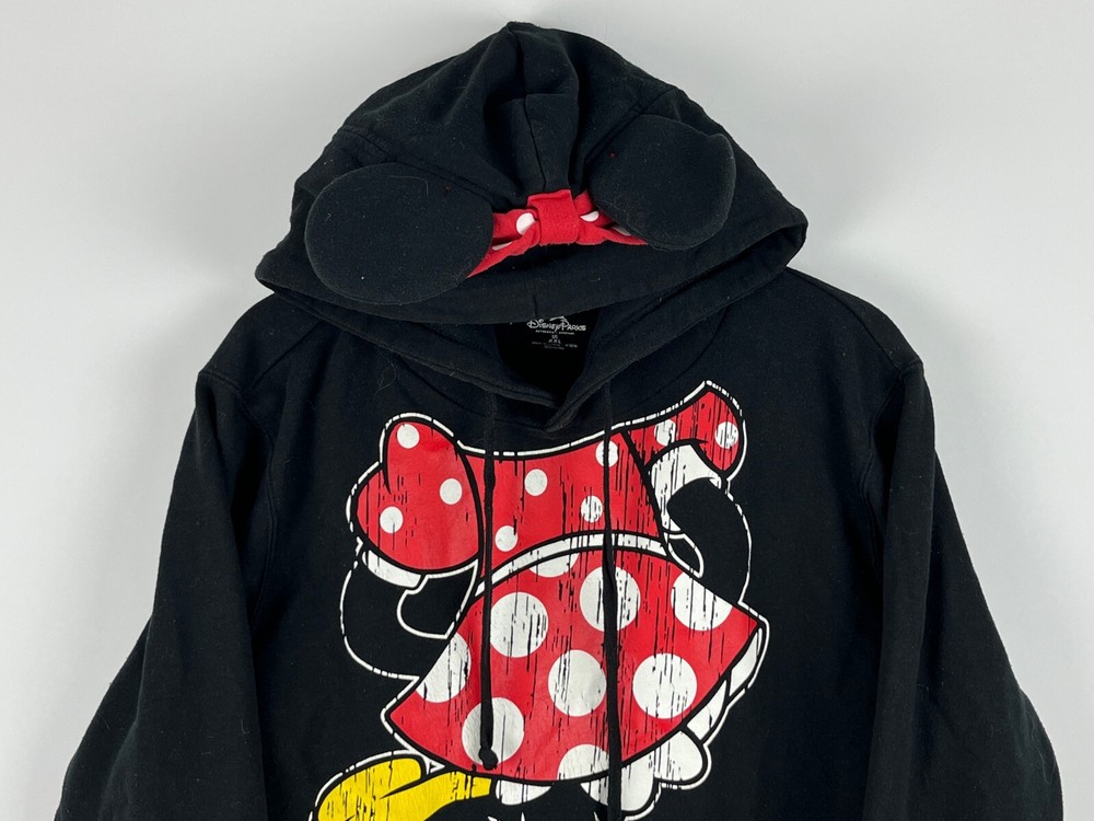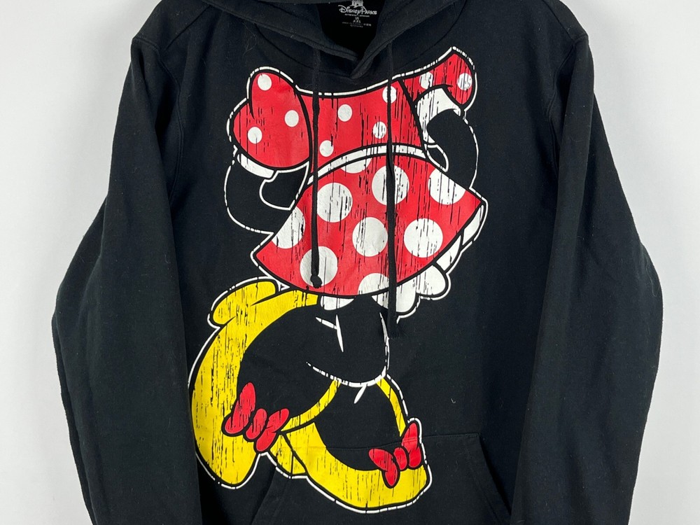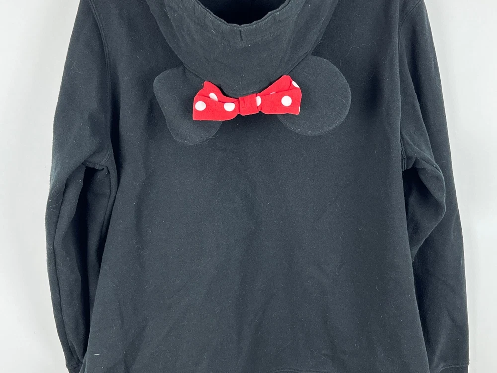Experience the magic of Disney with this charming Minnie Mouse Hoodie, an authentic piece from the Disney Parks collection. Crafted with a blend of cotton and polyester, this hoodie is designed for comfort and durability. The classic black color, complemented by the iconic Minnie Mouse emblem, makes it a versatile addition to any wardrobe, perfect for Disney enthusiasts and casual wearers alike. This pullover is not just a stylish piece but also practical, featuring convenient pockets and an elastic waist that provides a comfortable, stretchy fit. The round neck and long sleeves make it an ideal choice for various occasions, from activewear to casual outings. With its easy care and machine washable fabric, this hoodie is sure to become a treasured part of your everyday attire. Dimensions Shoulder to shoulder 18in Pit to pit 23in Shoulder to bottom 26in