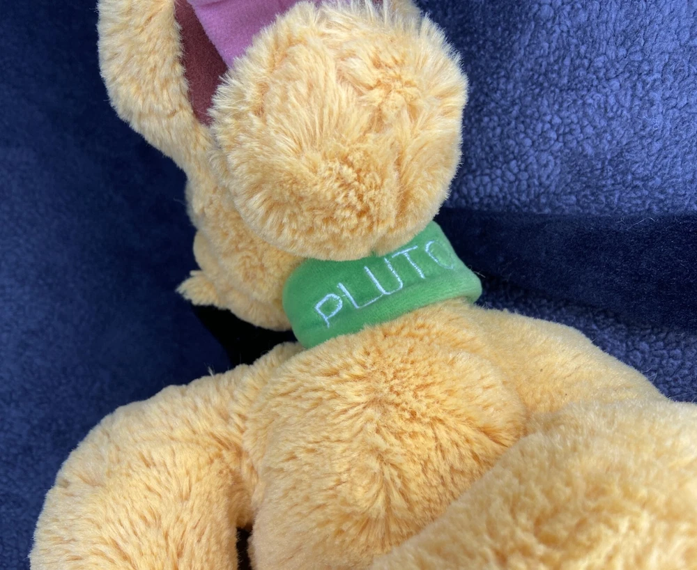 This adorable Pluto plush is super soft and looks just like the one from the parks! It’s in fantastic shape—no stains or tears, just a tiny tag flaw shown in pics. Super cuddly and perfect for Disney fans. Comes from a smoke-free home, so it’s fresh and ready for snuggles. Love it! Ask me anything!