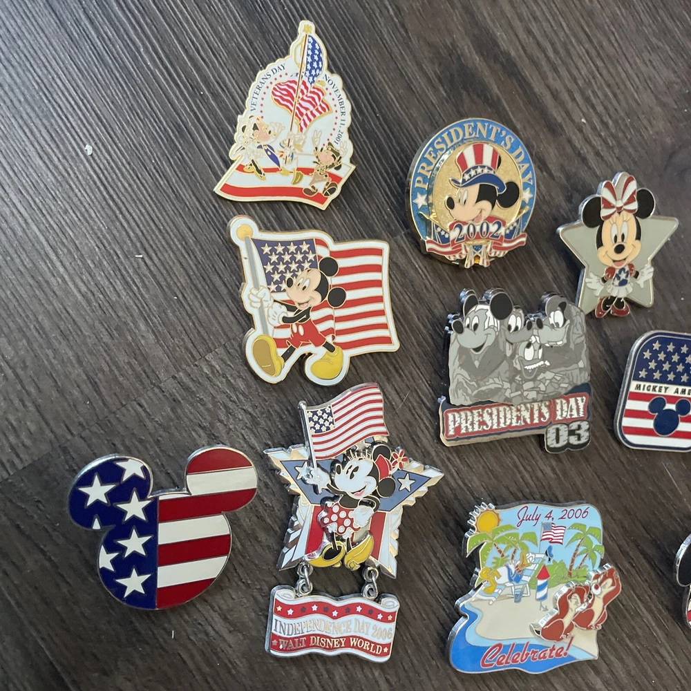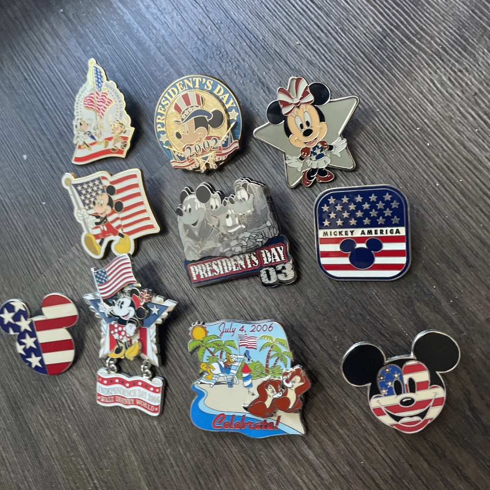 Disney Pin Patriotic Flag Lot Of 10 July Veteran President Mickey Minnie America. Condition is Used. Shipped with USPS Ground Advantage.
